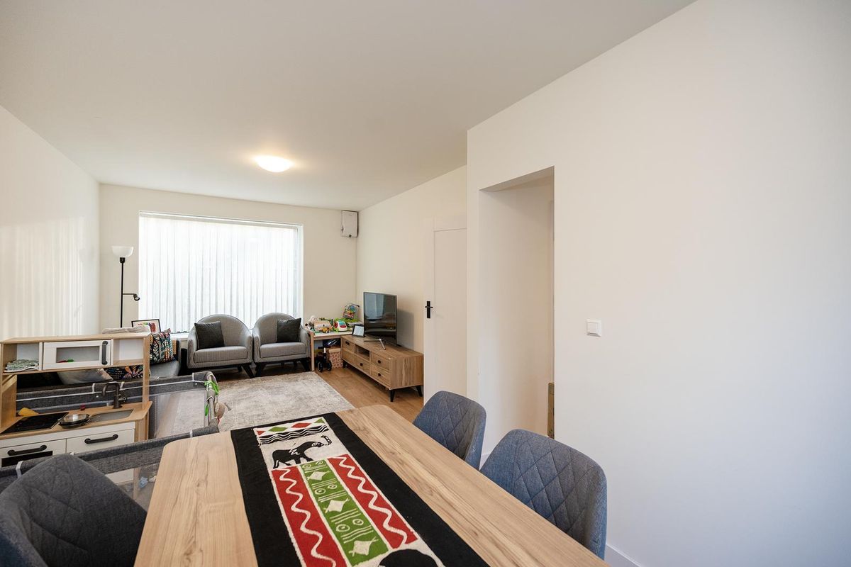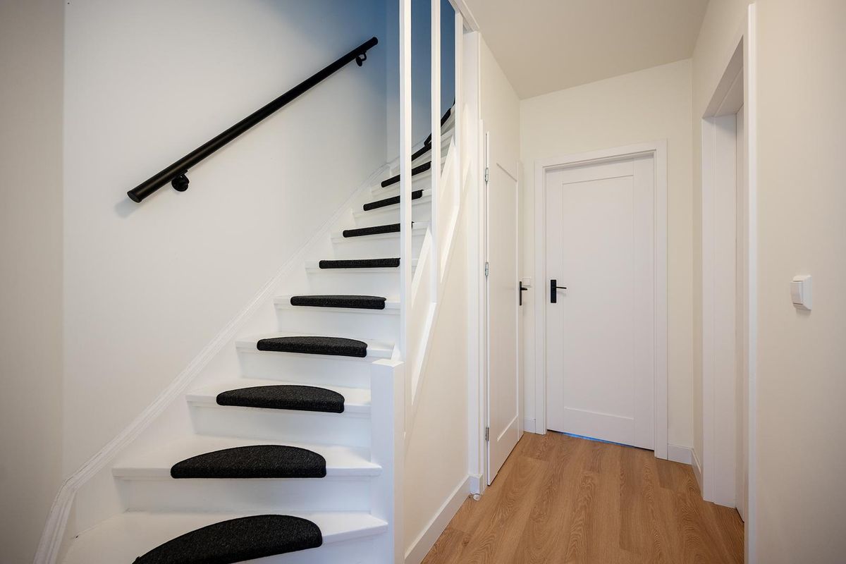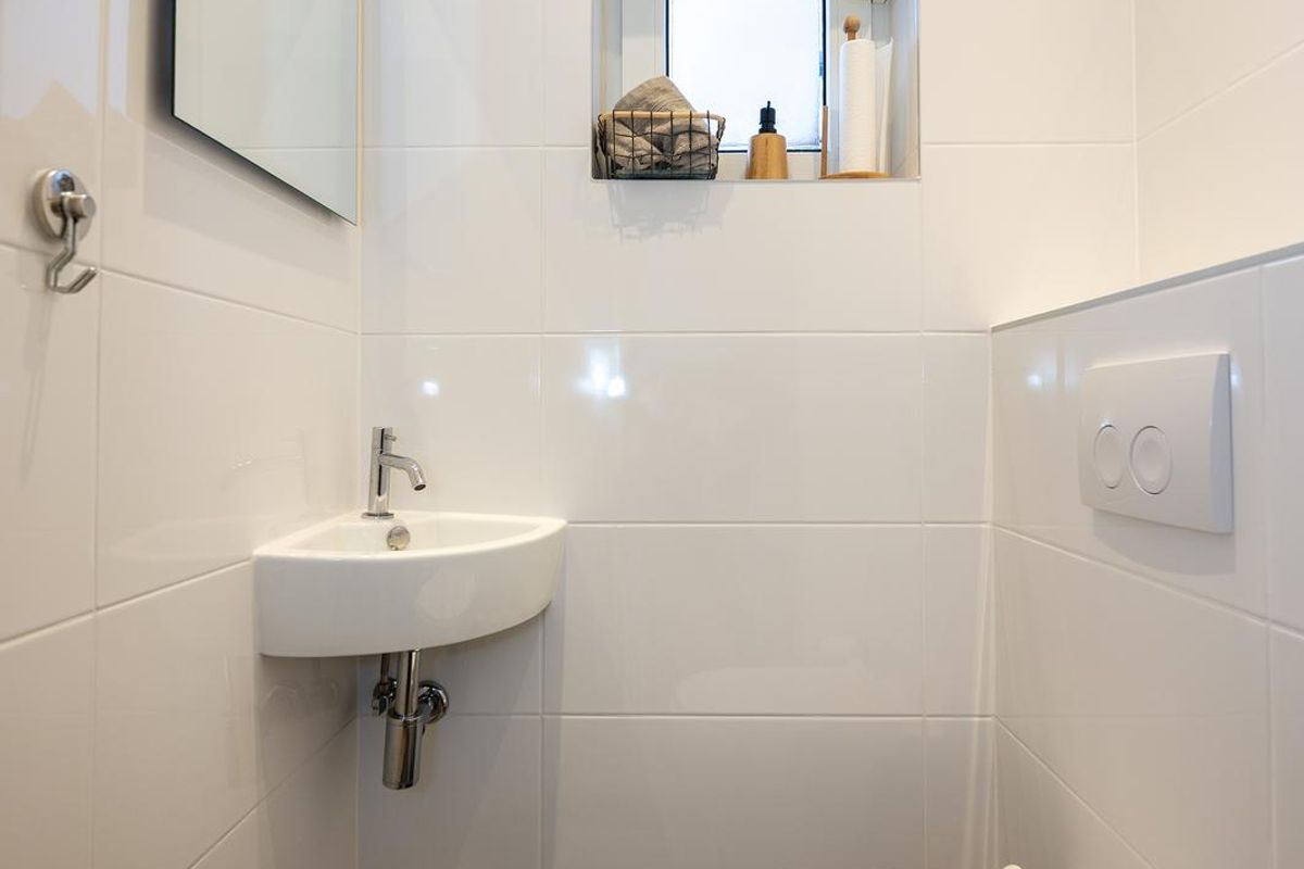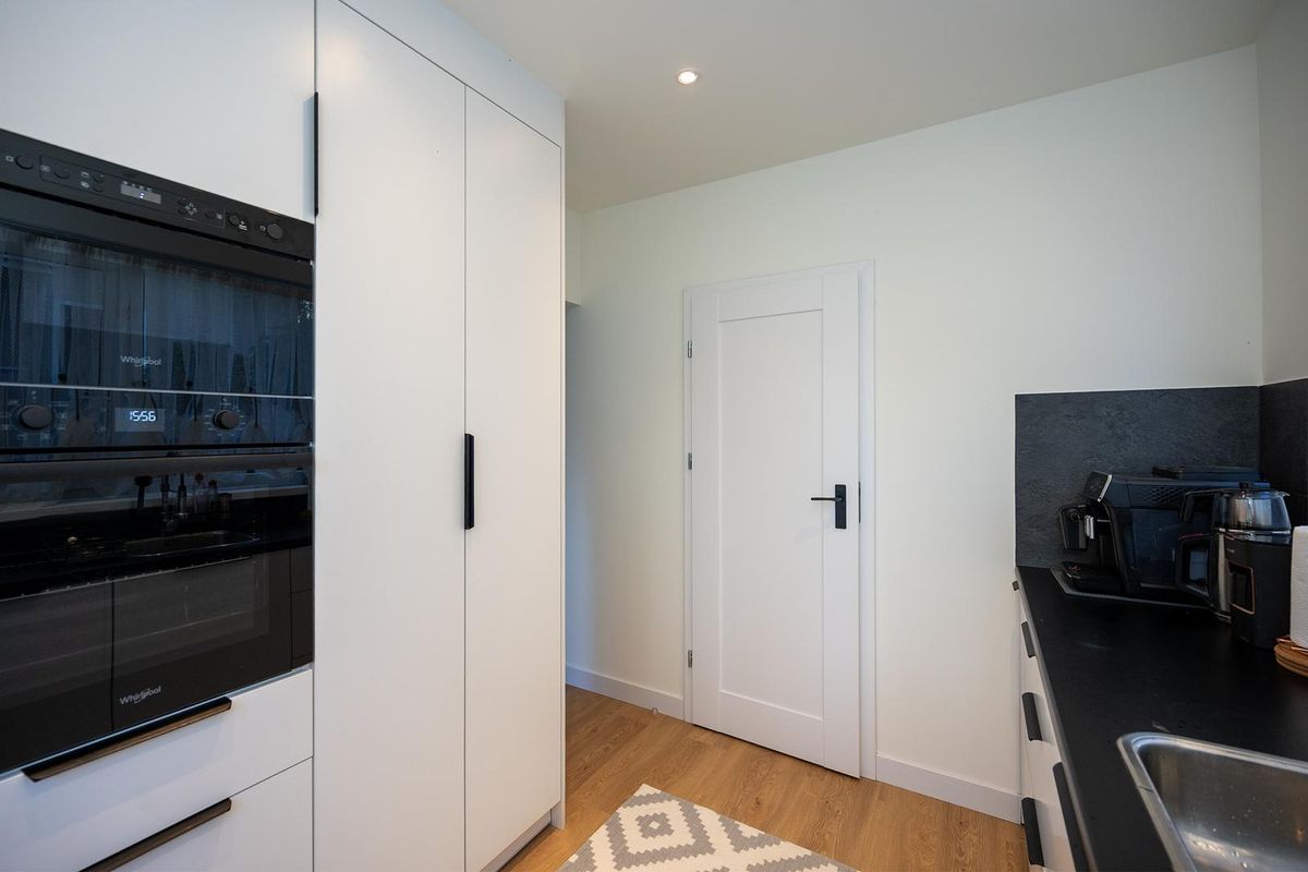 De entree leidt naar een hal met een onlangs gerenoveerd toilet. De keuken is volledig vernieuwd en voorzien van moderne apparatuur, waaronder een vaatwasser, koelkast, vriezer, oven, magnetron en inductiekookplaat.