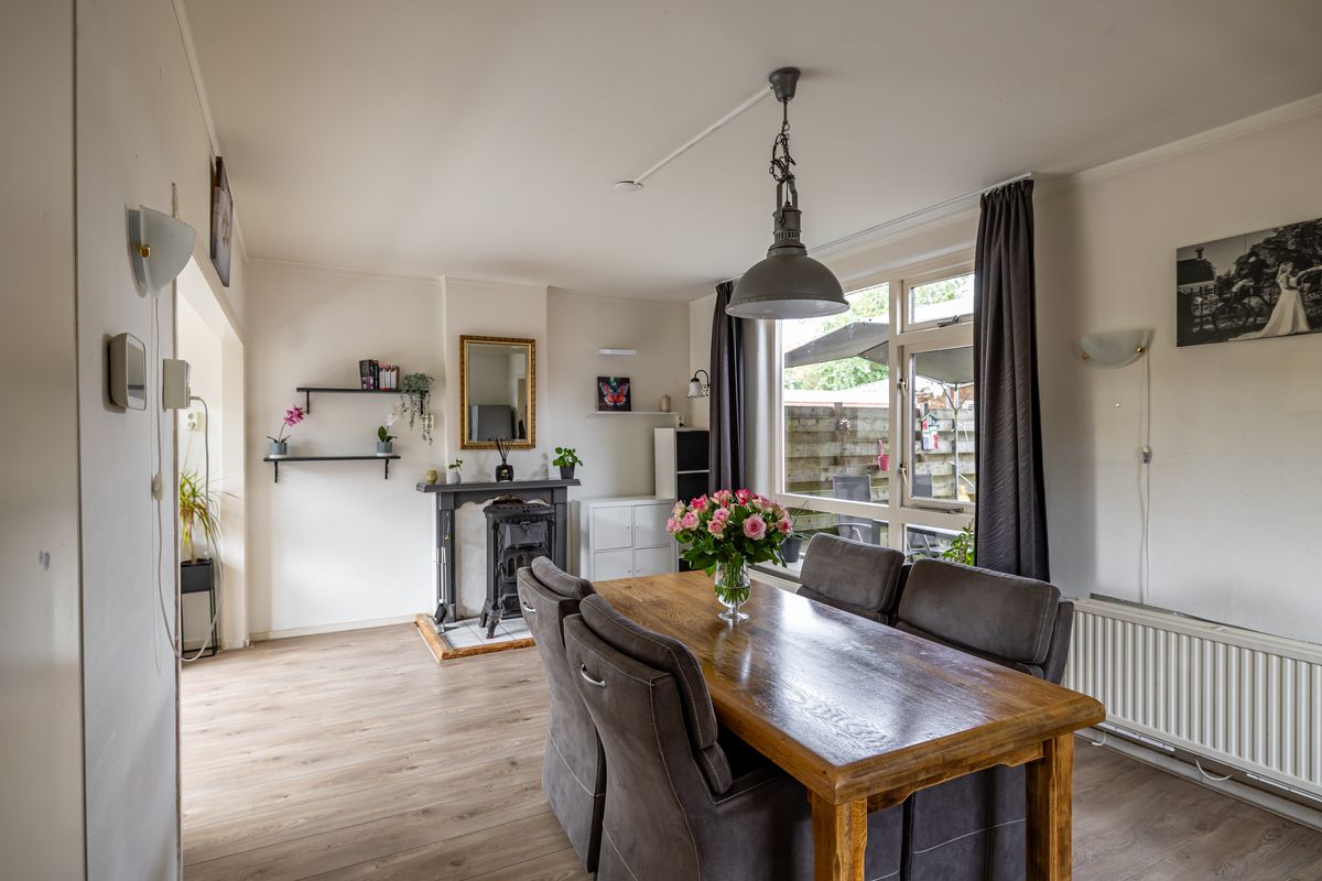 De woonkamer en leefkeuken met houtkachel zijn met elkaar verbonden in een L-vorm en vormen samen het sfeervolle hart van de woning. Hier komt iedereen samen om lekker tv te kijken of een spelletje te doen aan de grote keukentafel. In de zomermaanden is het overdekte terras in de tuin juist een fijne verzamelplek.