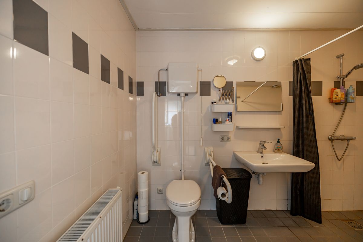 Dankzij het grote perceel is er veel ruimte rondom de woning. De diepe voortuin geeft afstand tot de rustige straat en op de lange oprit kunnen meerdere auto’s staan. Ook in de diepe achtertuin is zeer veel ruimte, zelfs nadat er een flinke uitbouw gerealiseerd werd. Deze uitbouw maakt de woning levensloopbestendig of geschikt voor mensen met een bewegingsbeperking vanwege de gelijkvloerse badkamer en slaapkamer die hier gecreëerd werden. Op de verdieping zijn nog eens drie slaapkamers en een tweede badkamer.