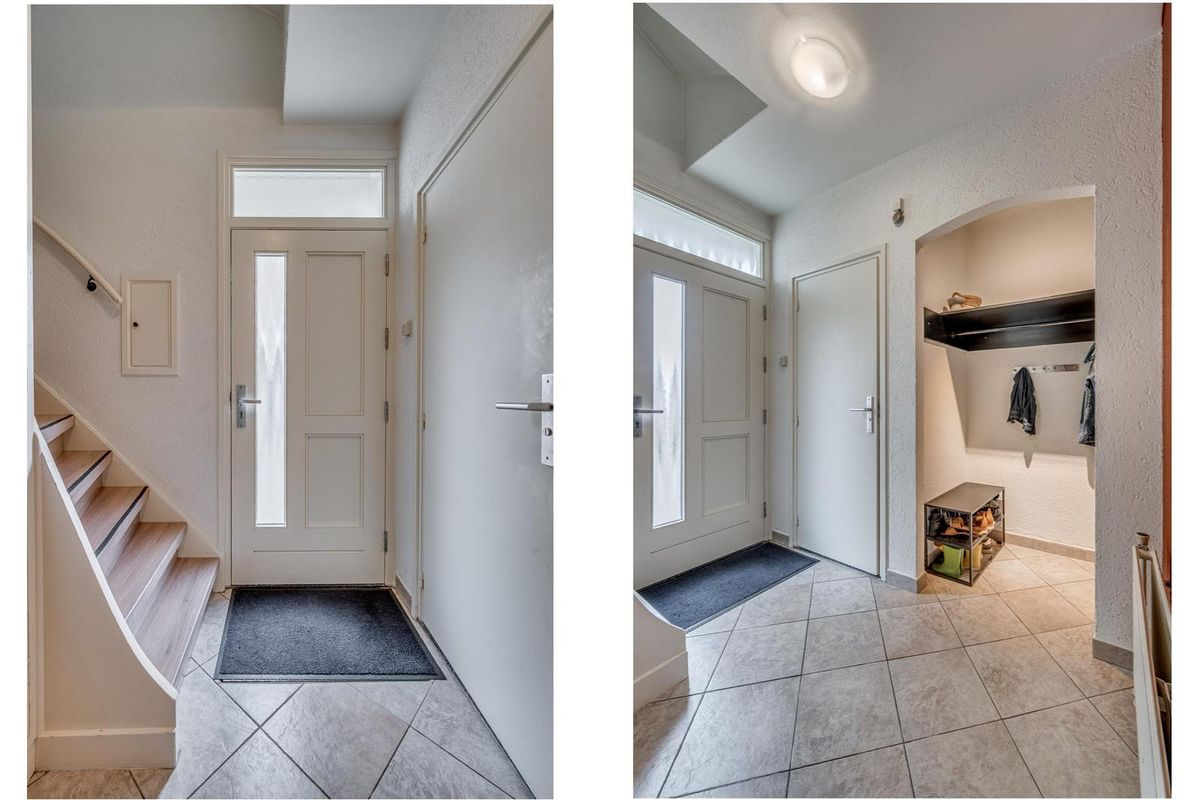 Via de beklinkerde oprit bereikt men de entree van de woning. De ruime hal geeft toegang tot de trapopgang naar de 1e verdieping, meterkast, garderobe, kastruimte, separate toiletruimte en loopdeur naar de woonkamer. De toiletruimte is voorzien van een zwevend toilet, fonteintje, verwarming en buitenraam. De ruime Z-vormige woonkamer is voorzien van een laminaatvloer. Aan de voorzijde is de zithoek gelegen en aan de achterzijde de eetkamer. Vanuit de eetkamer is er toegang tot de keuken. De keuken is voorzien van een 4-pits gasfornuis, afzuigkap, vaatwasmachine, oven en veel opbergruimte. Middels een loopdeur is er toegang tot de berging welke voorzien is van een inbouwkast en een loopdeur naar de overkapping.