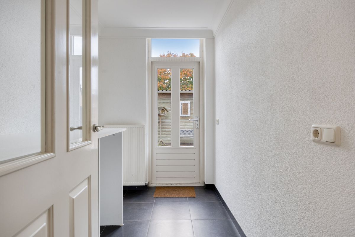 De privacy-biedende, beschutte achtertuin ligt op het noorden, heeft een breedte van circa 5 meter, een diepte van ruim 7 meter en is geheel omsloten. Zij is onderhoudsvriendelijk afgewerkt met sierbestrating/tegels, een enkele border met diverse planten en struikjes en een handig buitenkraantje. Verder treffen we er een houten tuinberging (ca. 6m²) aan, ideaal voor het stallen van bijvoorbeeld de fietsen en het (tuin)gereedschap. De achtertuin kan via een eigen, vernieuwde looppoort betreden worden; wel zo gemakkelijk zo’n eigen achterom!