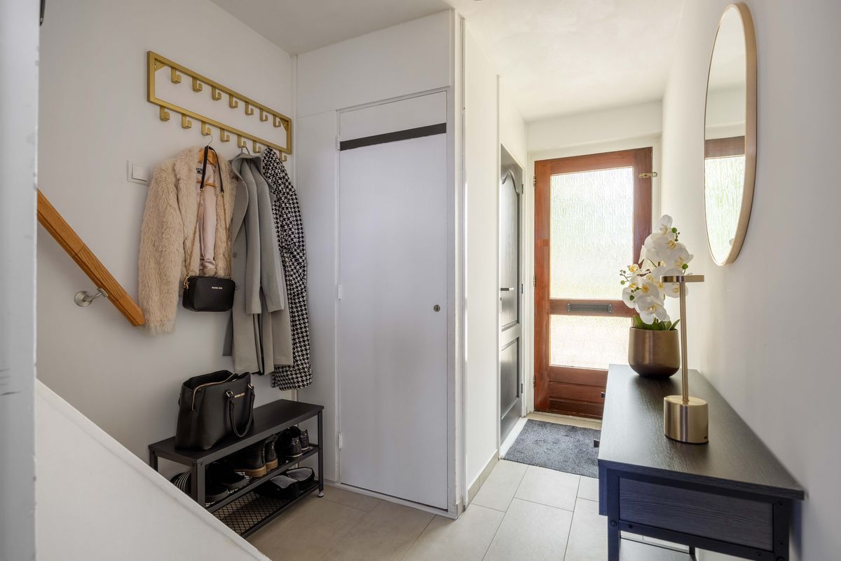 Stap binnen via de hal waar meteen opvalt hoe netjes en verzorgd alles is. Hier vind je niet alleen de meterkast, maar ook de trapopgang naar. De toiletruimte is voorzien van een modern wandcloset en fonteintje.