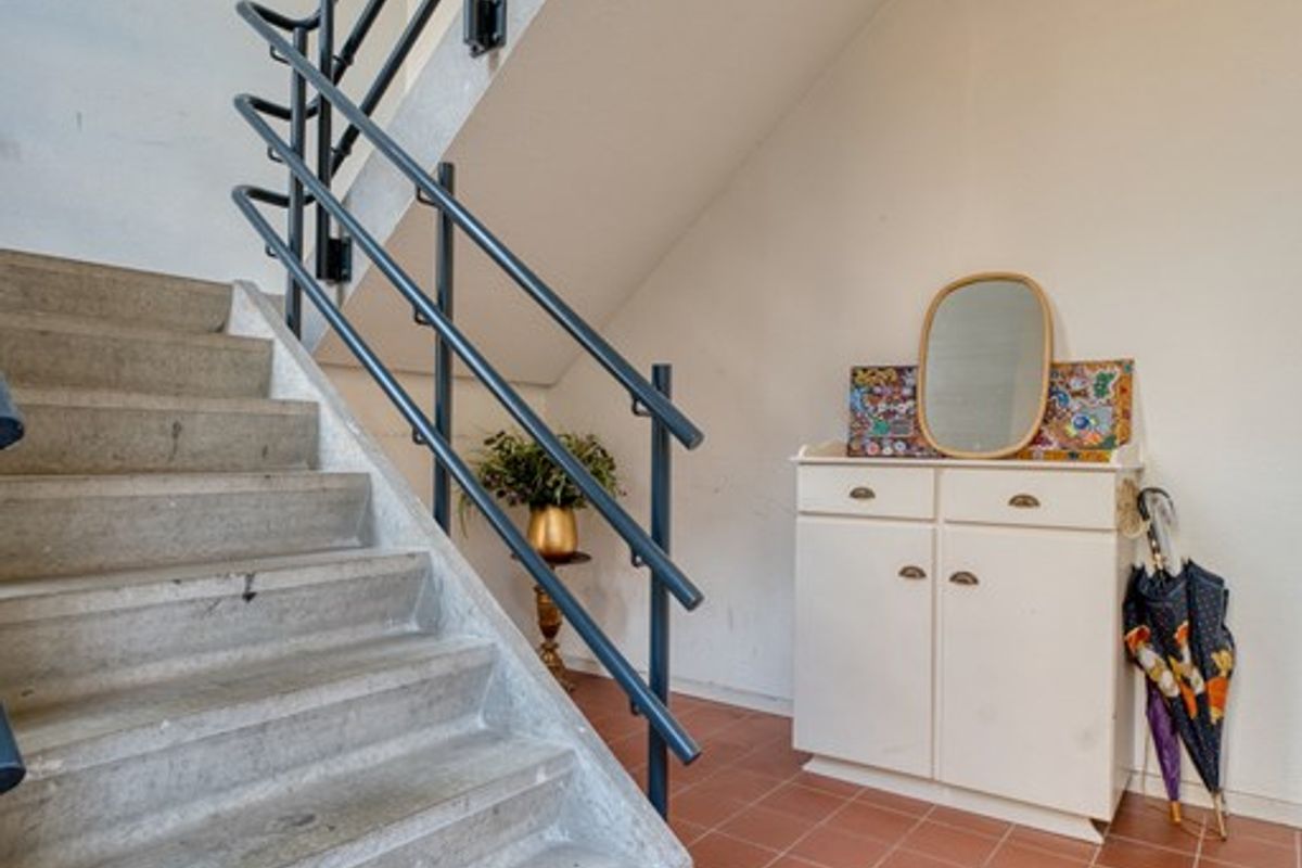 U komt het kleinschalige complex via de representatieve gemeenschappelijke entree binnen. Via het goed onderhouden trappenhuis bereikt u het appartement op
