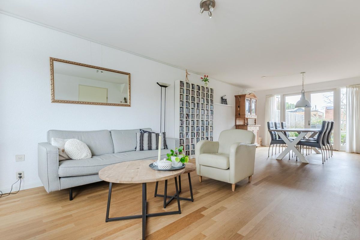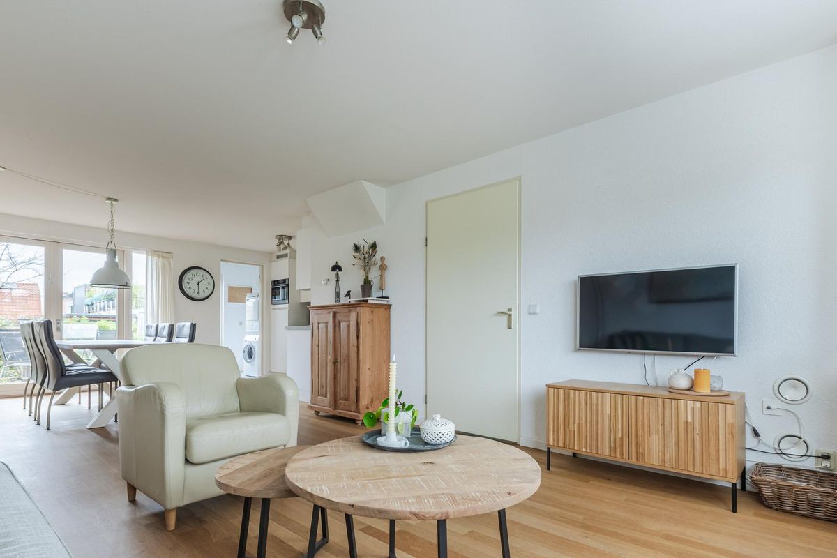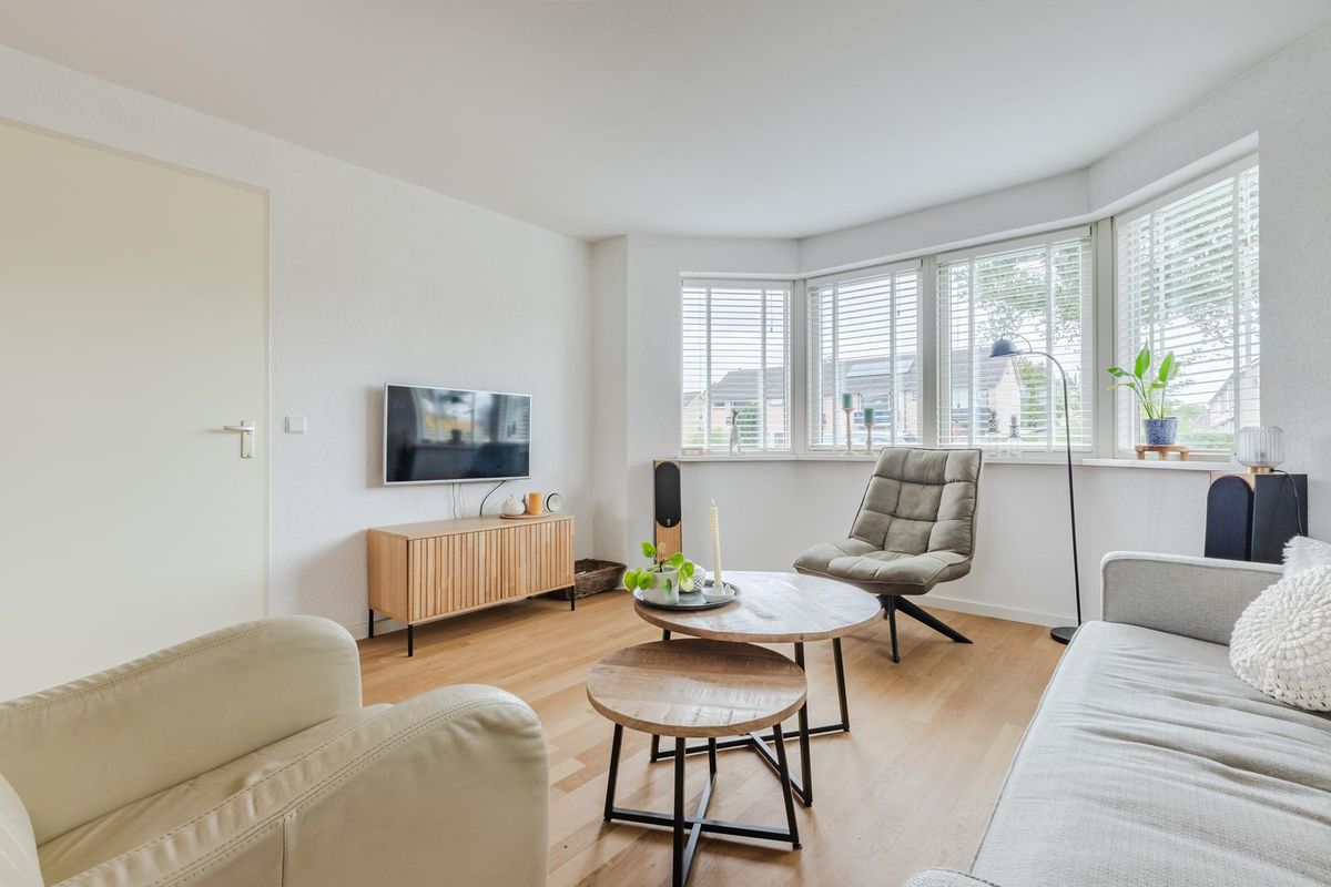 Via de entree met hal, toilet en trapopgang kom je binnen in de lichte, ruime woonkamer. De erker aan de voorzijde zorgt voor een prettige lichtinval en een fijn uitzicht op het plantsoen aan de voorzijde. De woonkamer is sfeervol afgewerkt met een houten vloer en biedt volop ruimte voor een gezellige zithoek en eethoek.