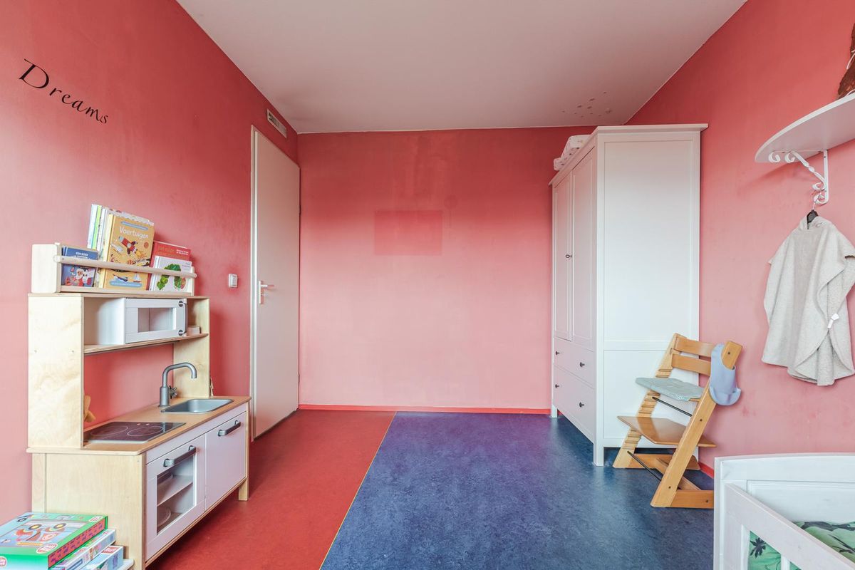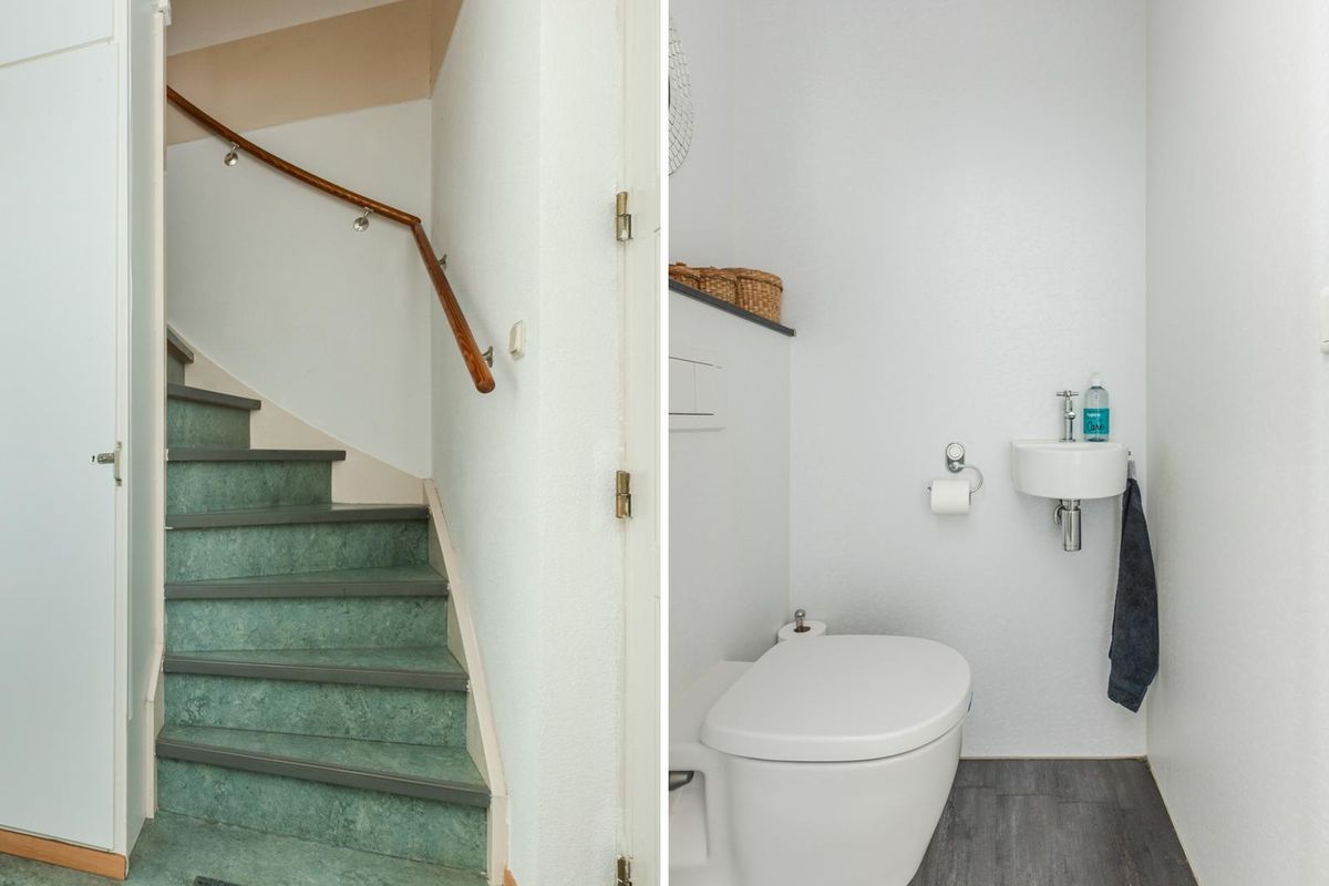 De eerste verdieping telt drie slaapkamers, allemaal met rechte wanden, wat zorgt voor optimaal gebruik van de ruimte. De grote slaapkamer aan de voorzijde beschikt over een vaste kast en dubbele deuren naar het balkon, die de kamer extra sfeer geven. De badkamer is voorzien van een ligbad, douchehoek, tweede toilet en wastafelmeubel.