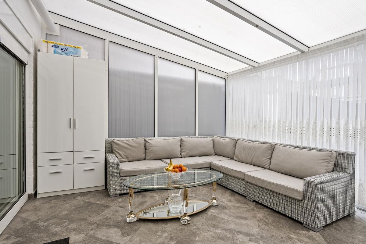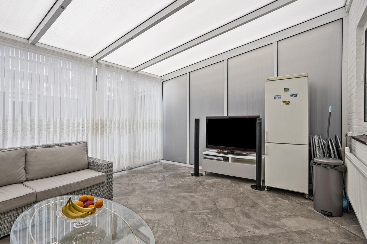 De ruime woonkamer is ingedeeld met een zitgedeelte aan de voorzijde en een eethoek richting de achterzijde. Aansluitend bevindt zich de open keuken, compleet met moderne inbouwapparatuur. Vanuit de keuken loop je door naar de serre, die dankzij de grote raampartijen veel lichtinval biedt en een prachtig uitzicht op de tuin.