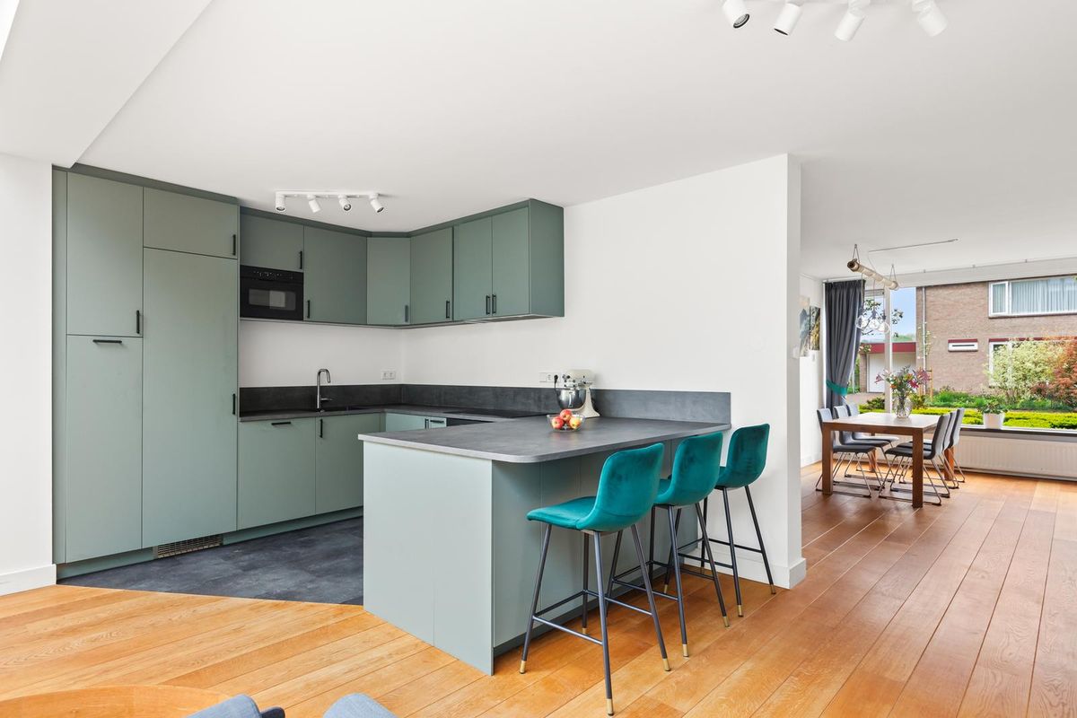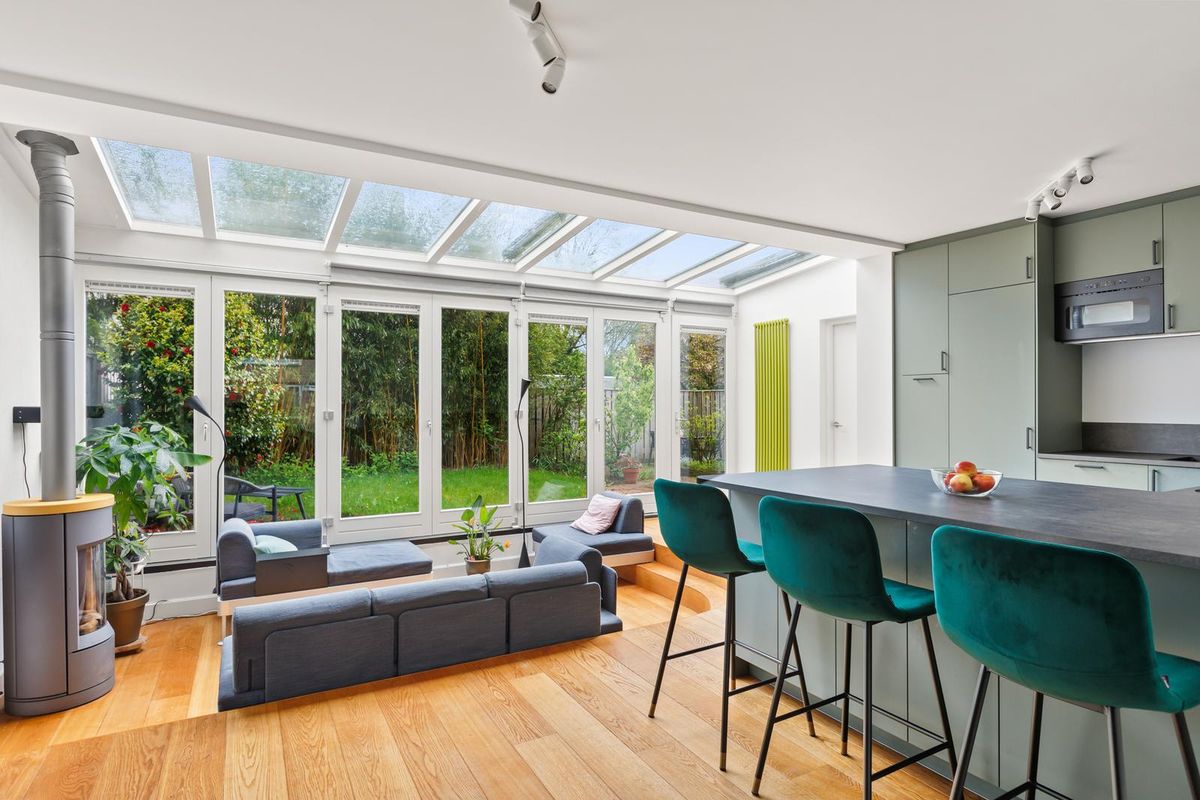 Zet op zomerse dagen die tuindeuren maar open! Deze harmonicadeuren kunnen over de hele breedte geopend worden, waardoor het binnen- en buitenleven perfect samen komen. Zie je het al voor je? Een zomerse barbecue met de hele familie in jouw achtertuin? De kinderen kunnen heerlijk buiten spelen, samen gezellig borrelen in de zitkuil en dat alles met de keuken dichtbij. Het vele groen in de tuin zorgt dat je hier heerlijk beschut van de zon kunt genieten.