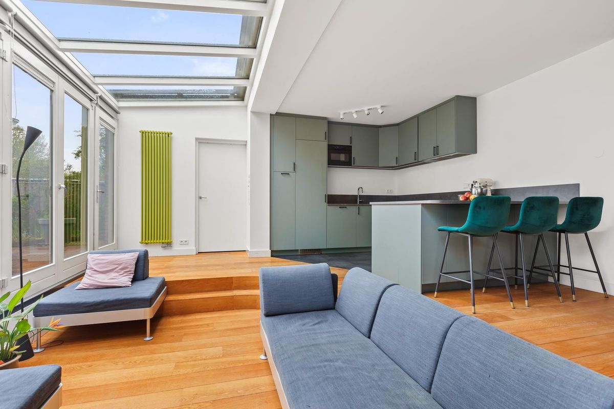 De voormalige garage is verbouwd tot een strakke, multifunctionele ruimte met veel lichtinval. Deze extra benedenkamer biedt volop mogelijkheden, denk aan een home cinema, sportruimte of een praktijk aan huis.