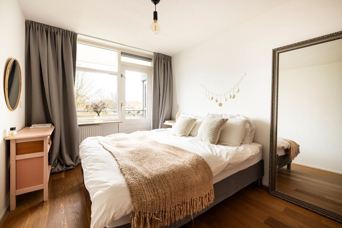 Op de tweede verdieping kom je via je eigen voordeur in je hal. Aan de rechterzijde is de nette badkamer te vinden. De woonkamer met de moderne open keuken is een heerlijk lichte ruimte. De ruime slaapkamer biedt ruimte aan een tweepersoonsbed, heeft vaste kledingkasten en heeft aangrenzend het balkon met vrij uitzicht voor veel lichtinval en privacy.