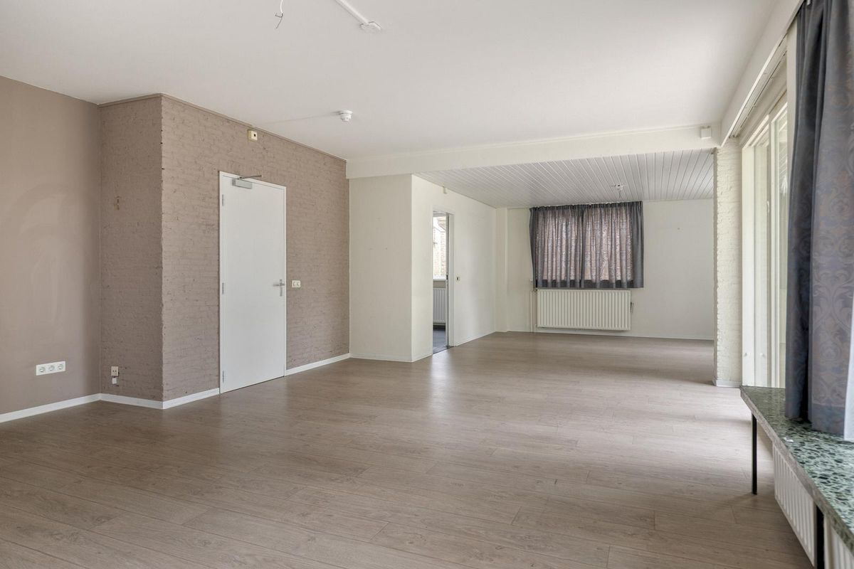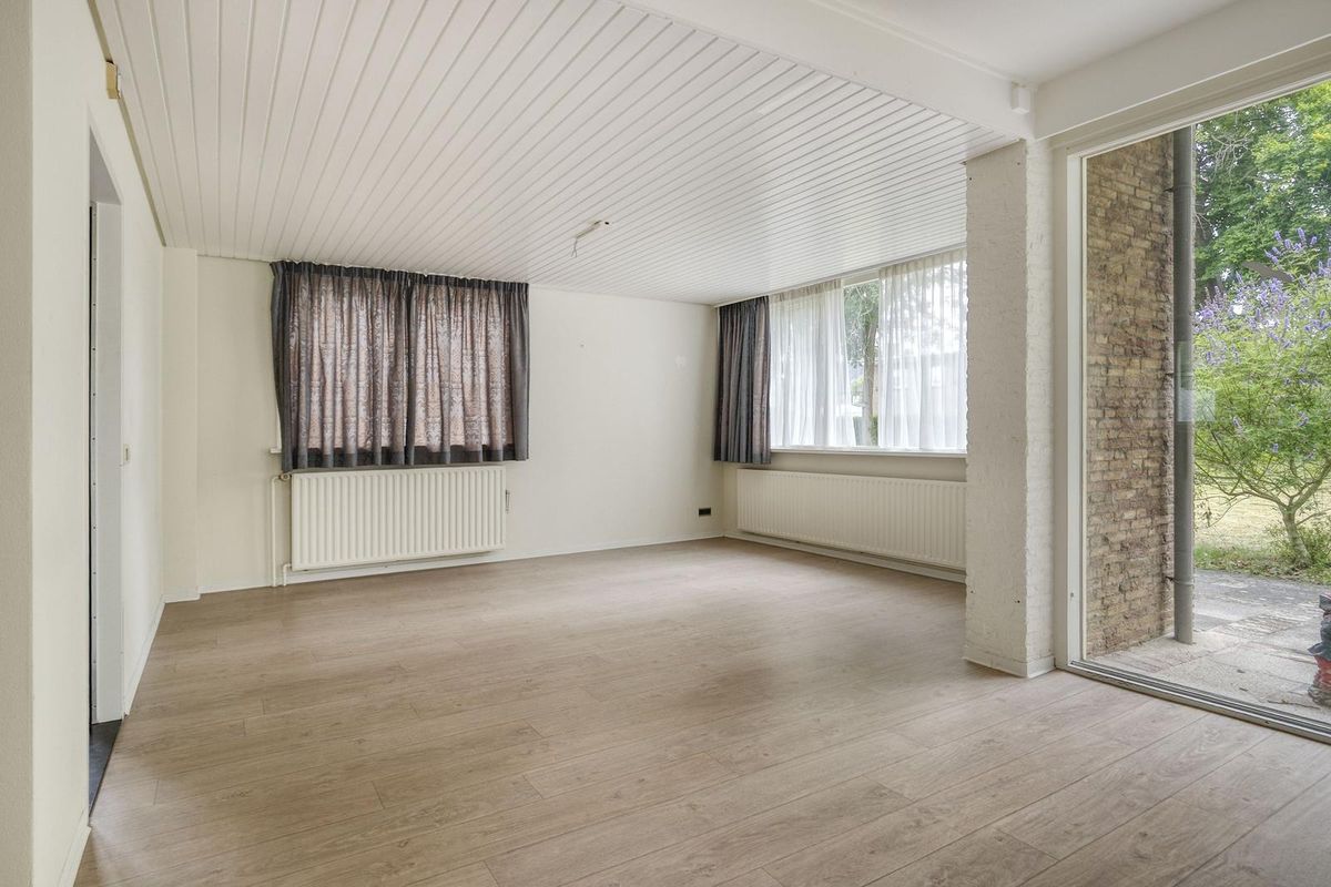 De riante woonkamer, met zicht op de tuin, is verdeeld in een heerlijke zithoek en open eetkamer. De schuifpui en grote ramen zorgen voor een ideale verbinding tussen binnen en buiten. Aansluitend aan de zithoek is een werk-/studeerkamer te vinden.