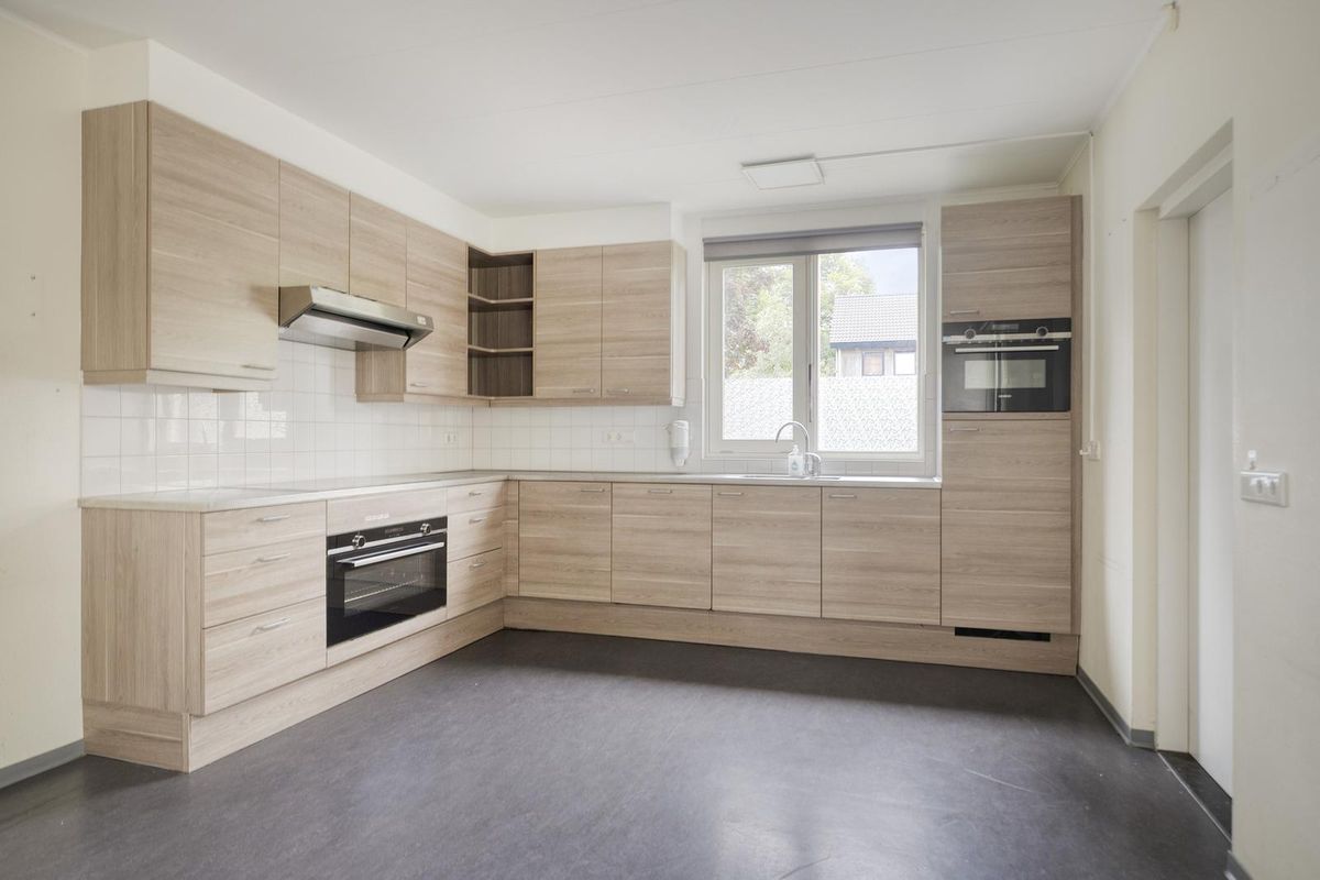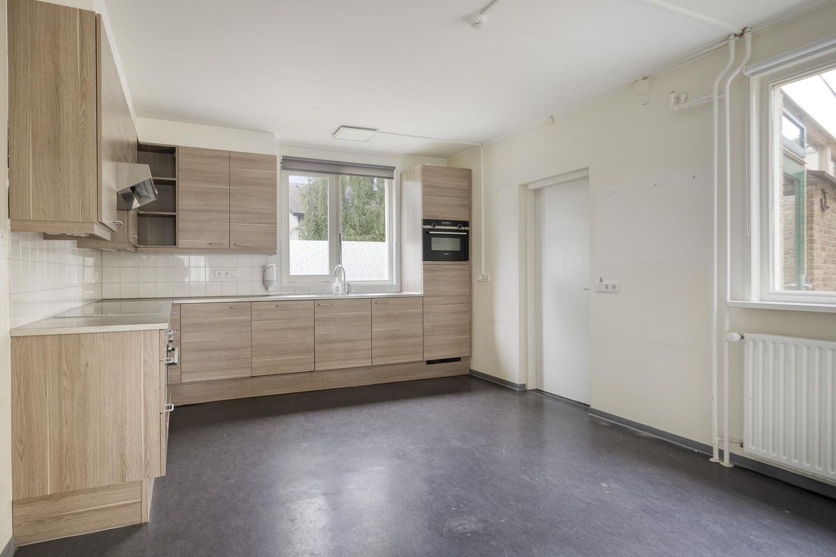Vanuit de eetkamer is er toegang tot de dichte woonkeuken, waar een nette complete hoekopstelling is geplaatst met inbouwapparatuur zoals inductiekookplaat, afzuigkap, oven, combimagnetron, koelkast en vaatwasmachine. De woonkeuken heeft een oppervlakte van 20m² en biedt vele mogelijkheden om hier je droomkeuken te realiseren.