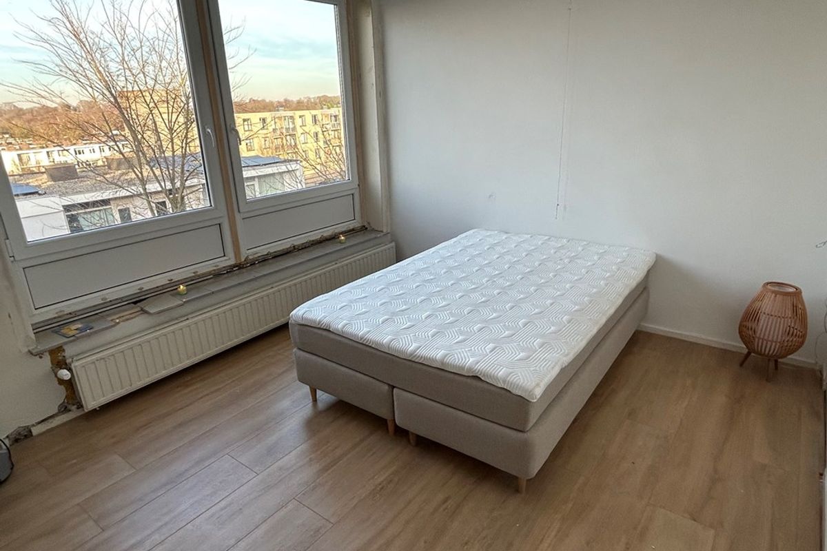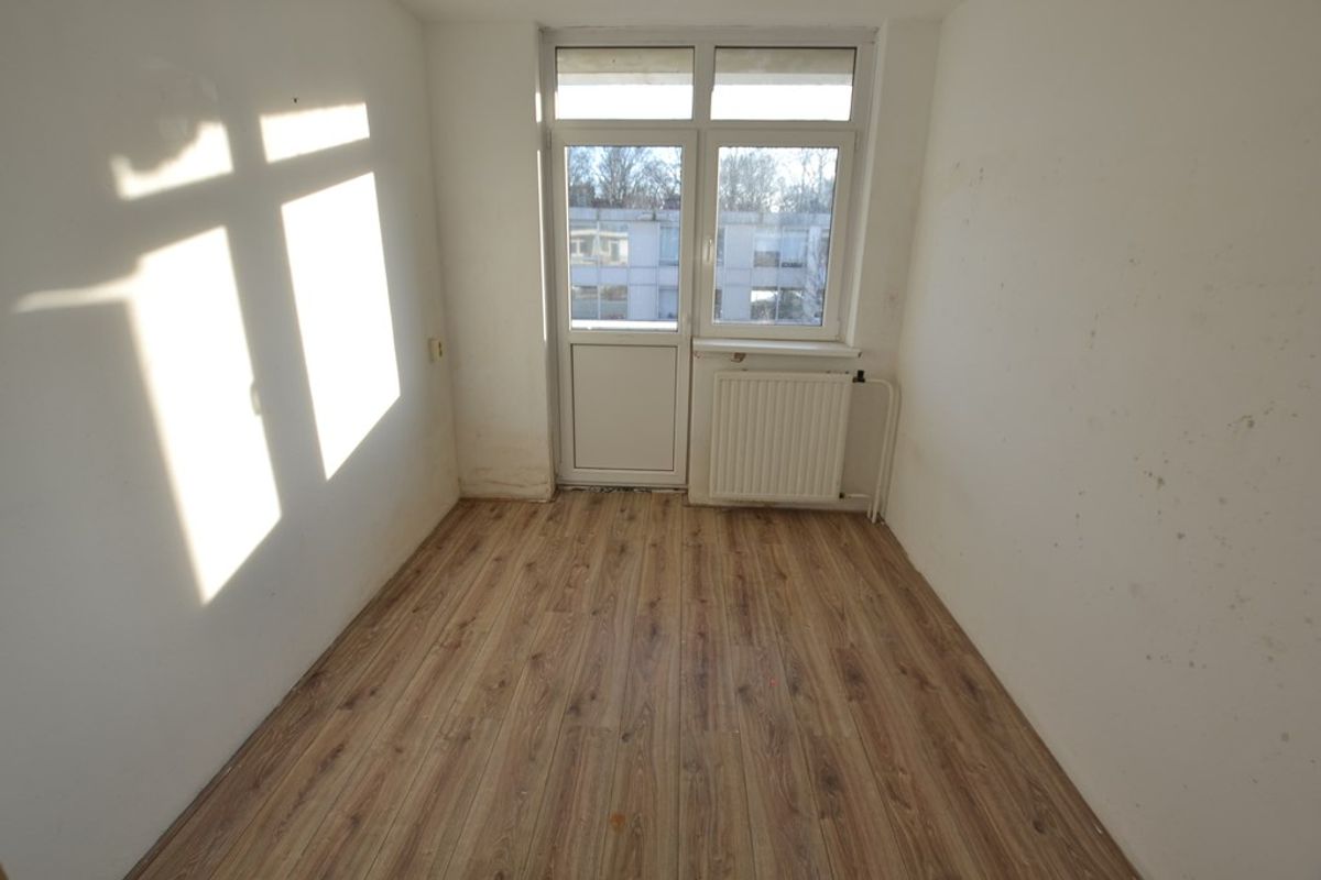 Slaapkamer 4: 3,05 x 2,55 met laminaatvloer en deur naar balkon.