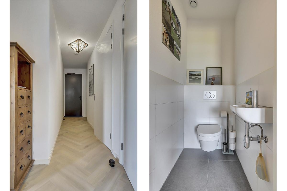 Bij binnenkomst via de nette entree valt direct de verzorgde afwerking op. De hal biedt toegang tot de technische ruimte, het toilet, de badkamer, de slaapkamer en de woonkamer.