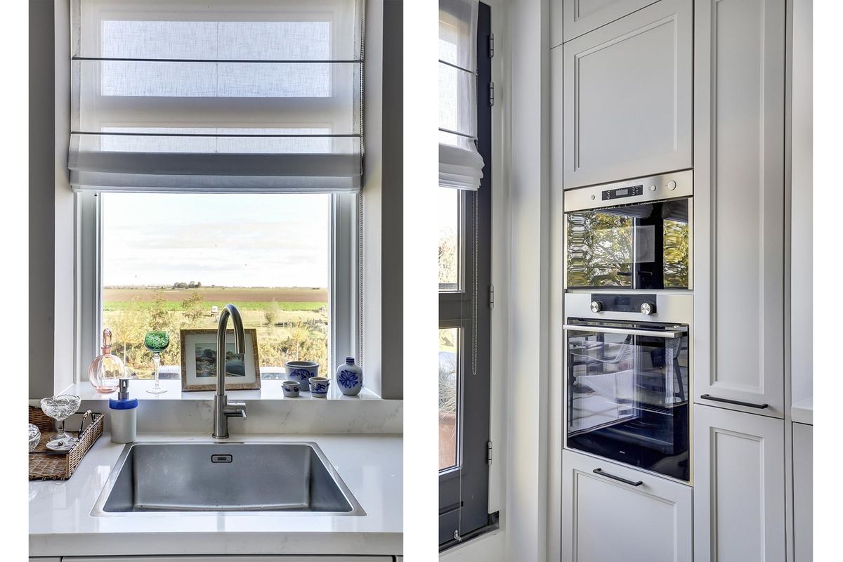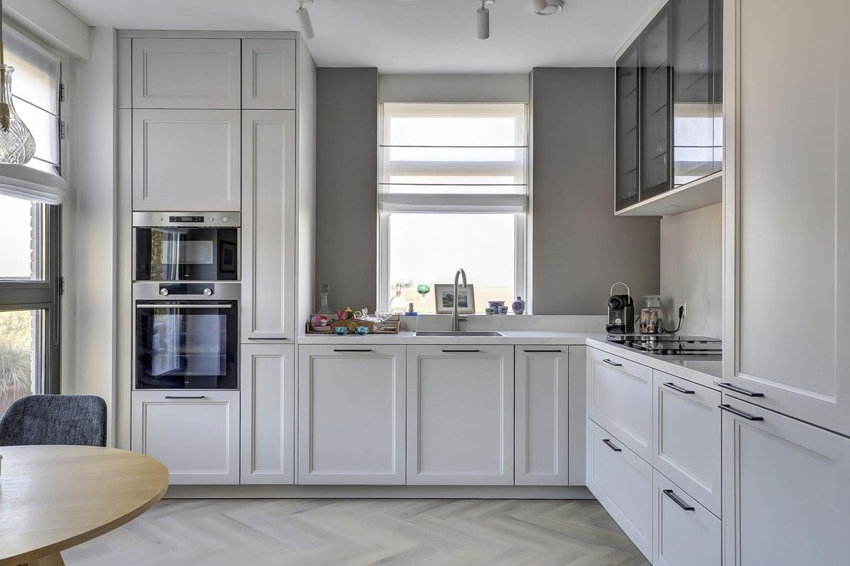 De open, luxe Siematic-keuken vormt een mooi geheel met de woonkamer en heeft een lichte kleurstelling en moderne uitstraling. De keuken is voorzien van diverse inbouwapparatuur, waaronder een oven, magnetron, inductiekookplaat met geïntegreerde afzuigkap, koel-vriescombinatie en vaatwasser. Bovendien biedt de keuken veel kastruimte en werkblad, ideaal voor kookliefhebbers.