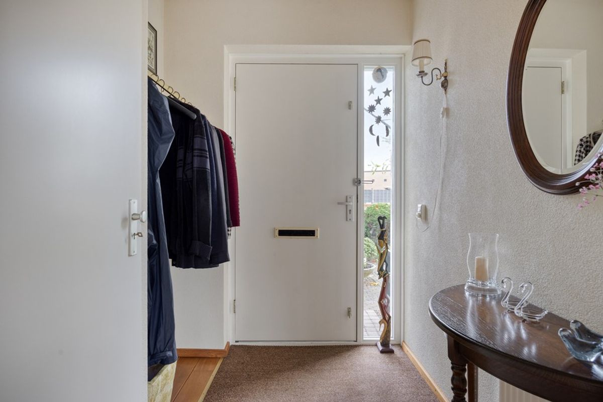 Via de overdekte entree bereikt u de hal met meterkast, die toegang geeft tot de L-vormige woonkamer. Deze royale leefruimte is voorzien van een gashaard en airconditioning, en biedt volop ruimte voor zowel een zit- als eetgedeelte. De gestucte wanden en plafonds, gecombineerd met een prachtige massief eikenhouten vloer en grote raampartijen, zorgen voor een warme en lichte sfeer. Via de openslaande deuren bereikt u het terras en de fraai aangelegde achtertuin. De halfopen keuken is licht van kleur en beschikt over een hoekopstelling met veel opbergruimte en diverse inbouwapparatuur, waaronder een 4-pits gaskookplaat, afzuigkap, koelkast en vaatwasser. Aansluitend vindt u de praktische bijkeuken met de cv-combiketel en de aansluitingen voor wasapparatuur. Vanuit de bijkeuken is er directe toegang tot de inpandige garage. Een tussenportaal vanuit de woonkamer leidt naar het toilet, de begane grond slaapkamer en de trap naar de eerste verdieping. De slaapkamer is netjes afgewerkt gestucte wanden en zonwerende screens, en heeft via een loopdeur direct toegang tot de achtertuin. De moderne badkamer (2023) beschikt over een toilet, douchecabine en wastafel en is en suite verbonden met de slaapkamer.