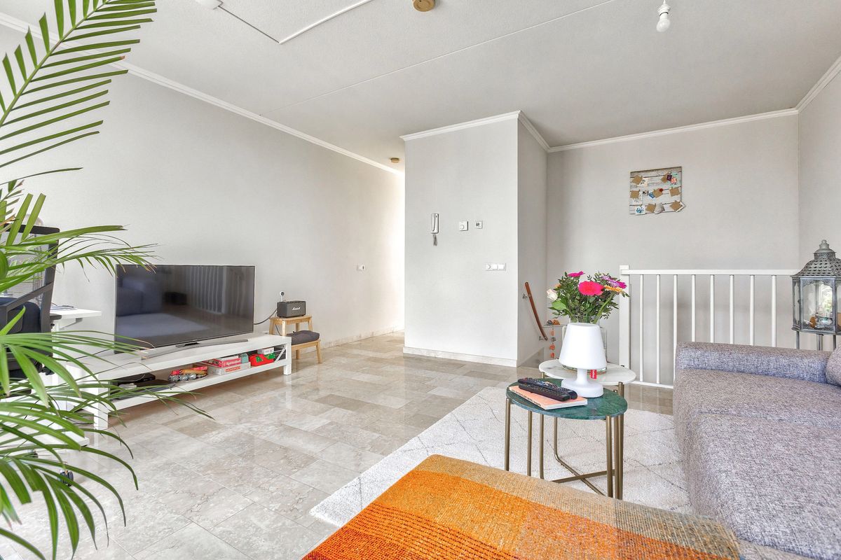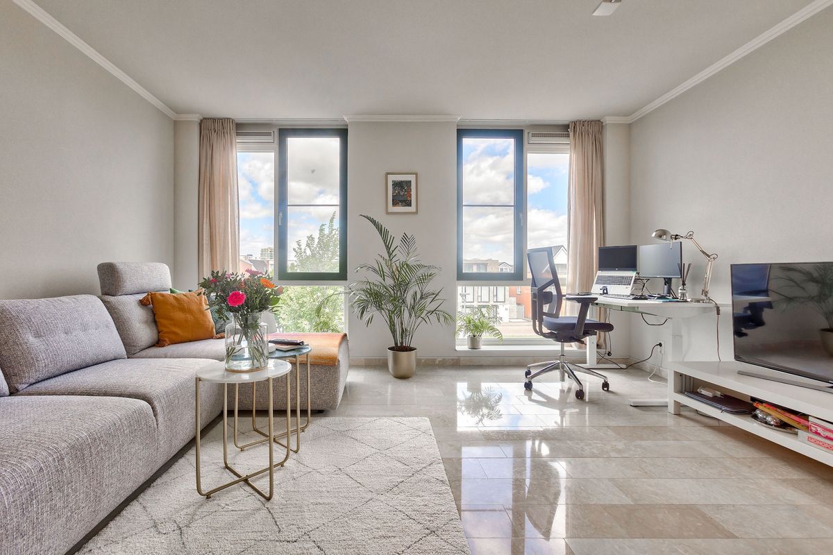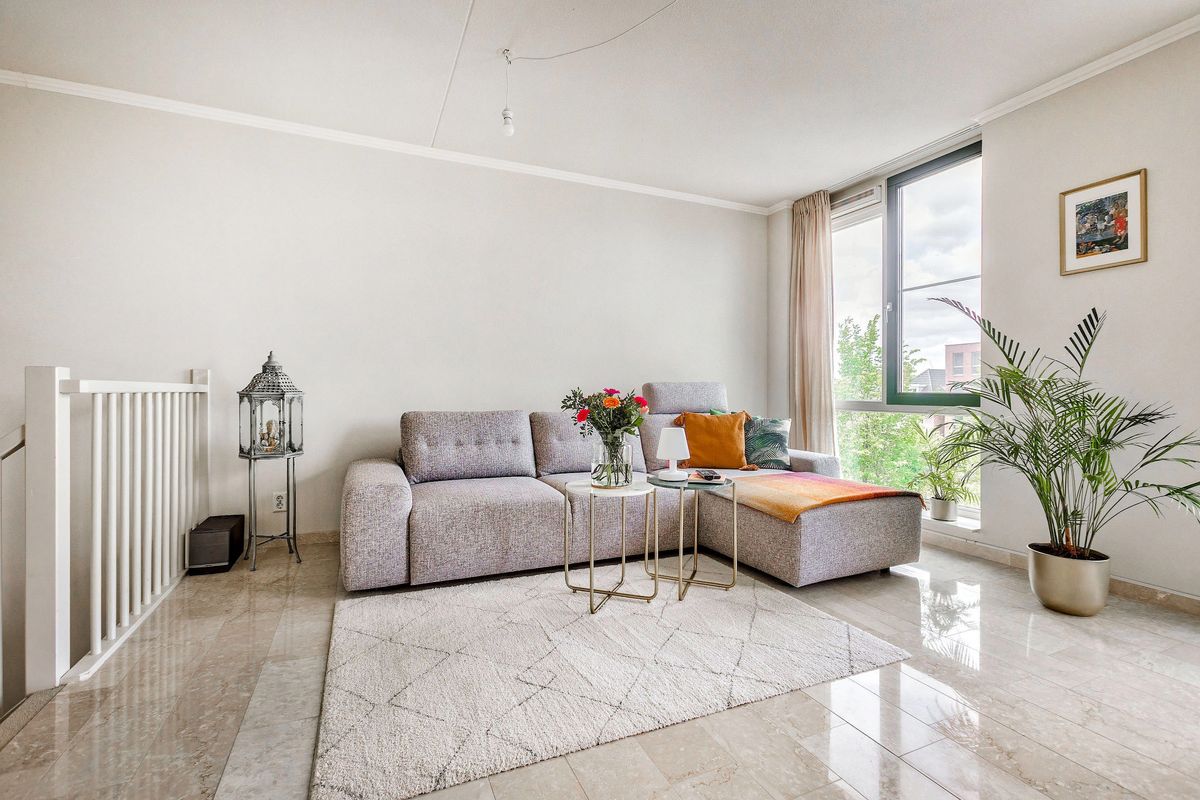Via de trap kom je uit in de ruime woonkamer voorzien van grote ramen welke zorgen voor veel licht en uitzicht over de buurt en het water aan de voorzijde van de woning. De woonkamer is modern ingericht, nette wandafwerking en een luxe hardstenen vloer met vloerverwarming. Daarnaast is voldoende ruimte voor het inrichten van een 2e thuis werkplek aan de voorzijde van de living (zie foto's ter indicatie). In de doorloop tussen de woonkamer en de keuken bevindt zich een 2e separaat toilet.