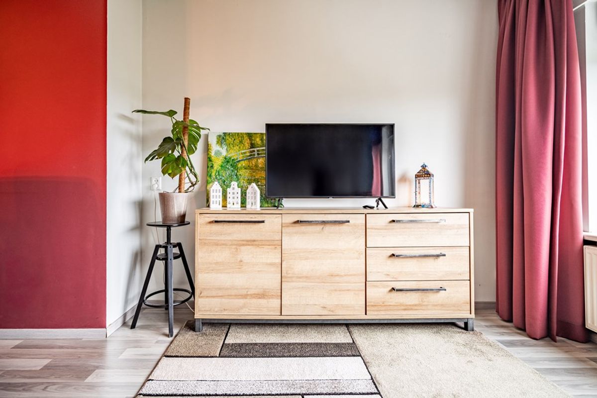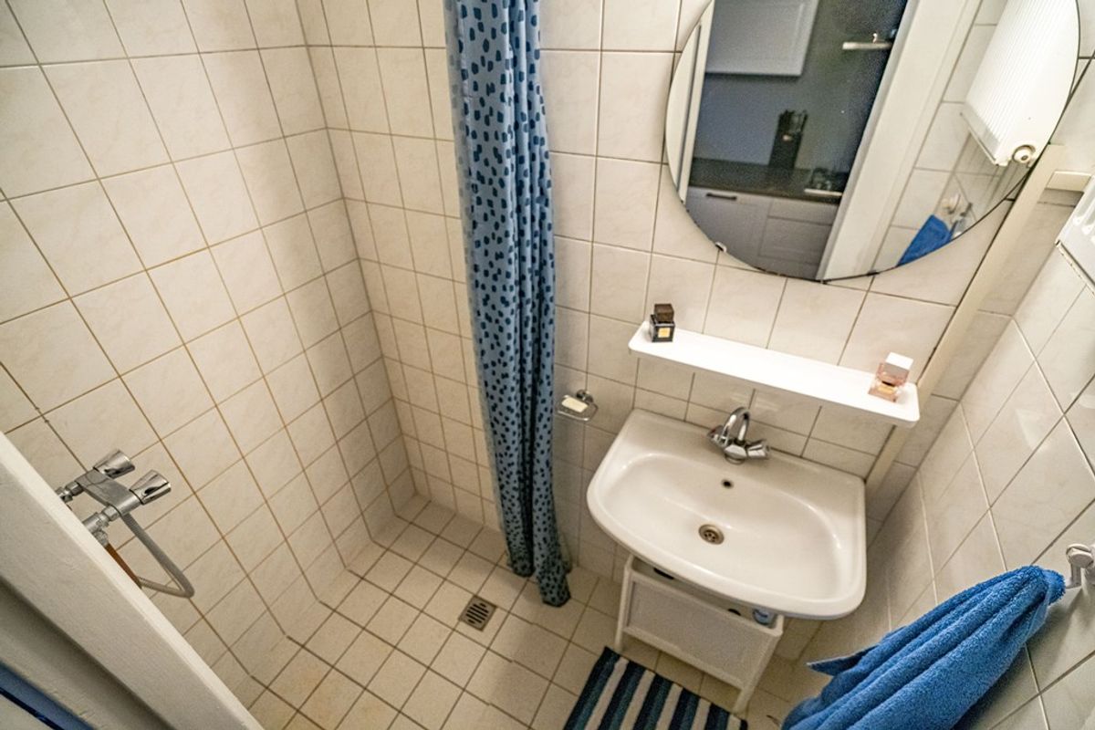 De moderne keuken is uitgerust met diverse inbouwapparatuur, waaronder een kookplaat, afzuigkap, vaatwasser, koelkast en combimagnetron. Vanuit de keuken bereikt u de badkamer, eenvoudig maar functioneel, en ideaal voor een frisse start van de dag.