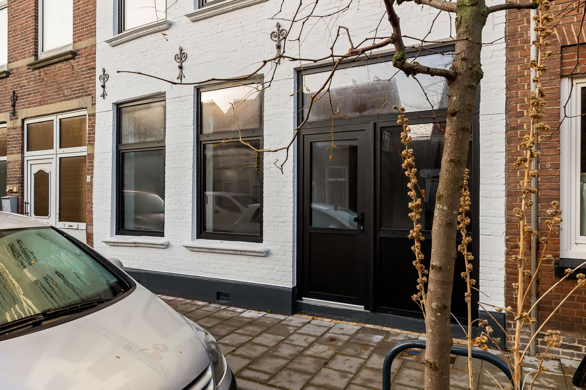 Entree, hal met de trapopgang en de vernieuwde uitgebreide meterkast. De woonkamer is sfeervol met hoge plafdons en een houten vloer. De open keuken is strak uitgevoerd in het zwart en voorzien van diverse inbouwapparaten. Portaal met toegang tot het toilet.