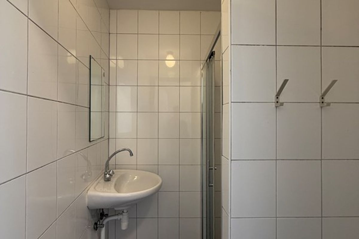 Via de hal bereik je zowel de gemeenschappelijke ruimtes als de kamer. Op de eerste verdieping bevinden zich twee toiletten, evenals twee badkamers met wasruimte. Daarnaast is hier het gezamenlijke dakterras gesitueerd. Op de tweede verdieping ligt de ruime studentenkamer van 29,79 m². De kamer beschikt over een eigen keukenblok, dat is voorzien van alle benodigde voorzieningen.