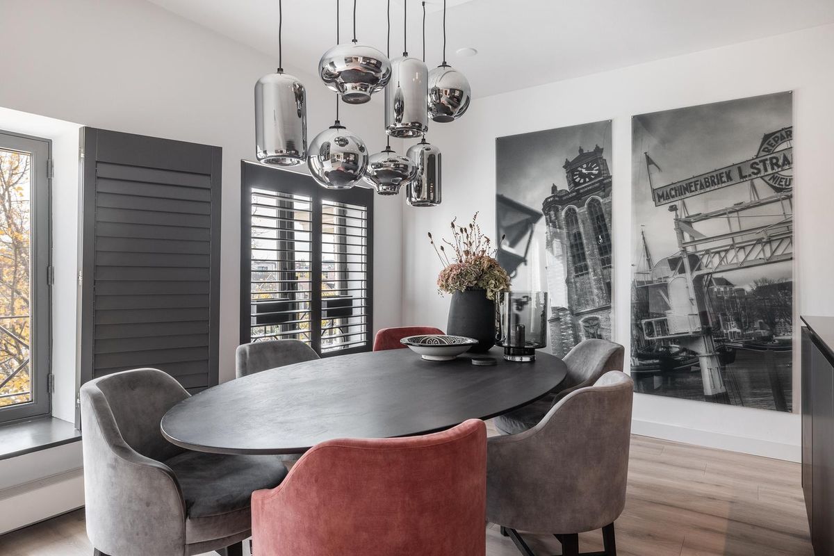 De royale woonkamer met halfopen keuken biedt een adembenemend uitzicht over de Nieuwe Haven, een panorama dat nooit verveelt. Dankzij de hoge ramen, brede vensterbanken en strakke afwerking, ademt de ruimte rust en klasse, met een stijlvolle balans tussen oud en nieuw. Het appartement mag met recht instapklaar worden genoemd.