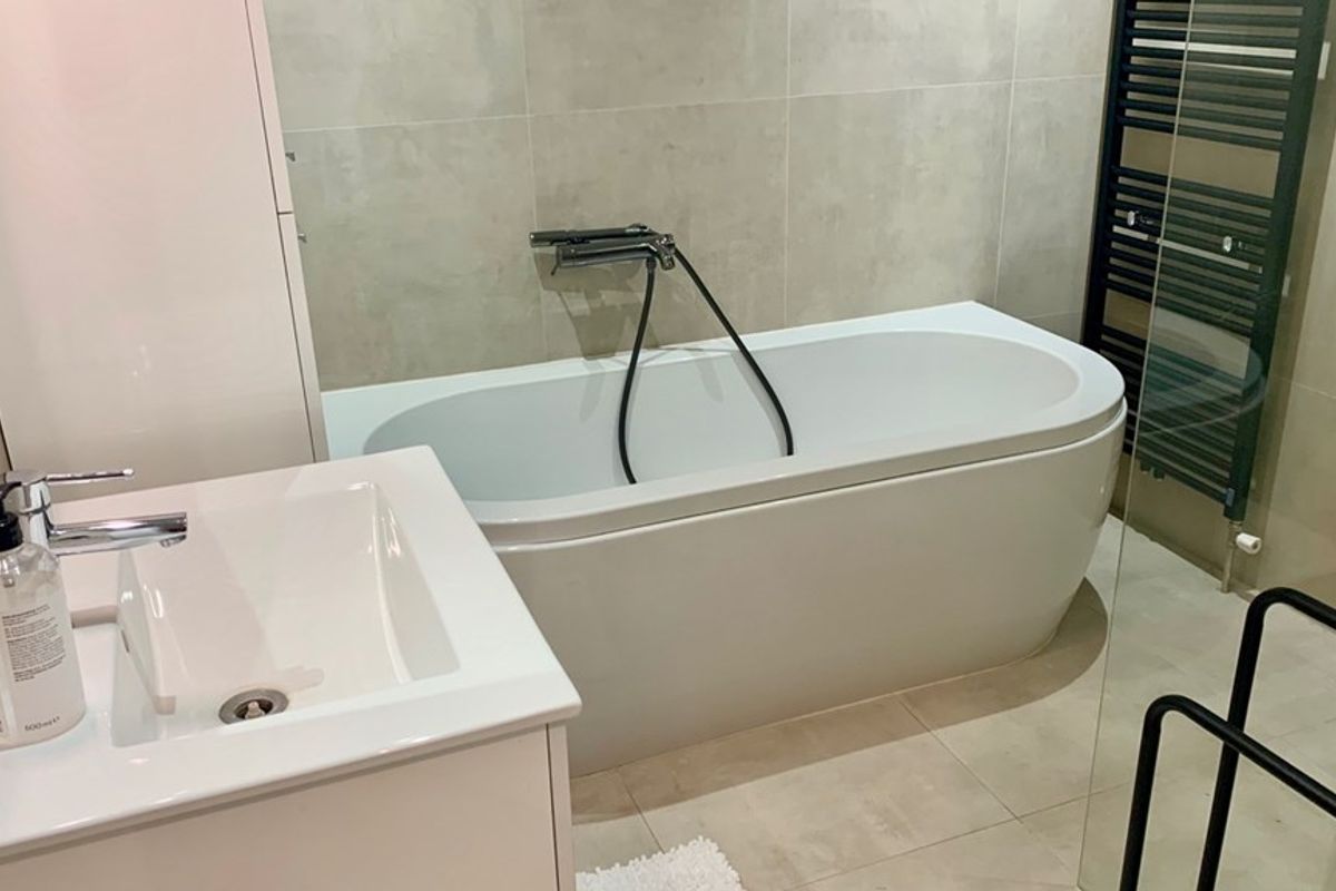 Shared entrance from the street. Hallway on ground floor to the apartment. Entrance in hallway with doors to all rooms. Spacious and bright living room with modern open kitchen with appliances such as dishwasher, separate freezer and fridge, sink, oven / microwave, induction stove and ample storage space. 3 spacious bedrooms all with wardrobes and comfortable beds. Bathroom with bath, walk-in shower and sink. Separate room for the washing machine and dryer. Toilet with faucet. Laminate flooring, centrally heated and fully double glazed.