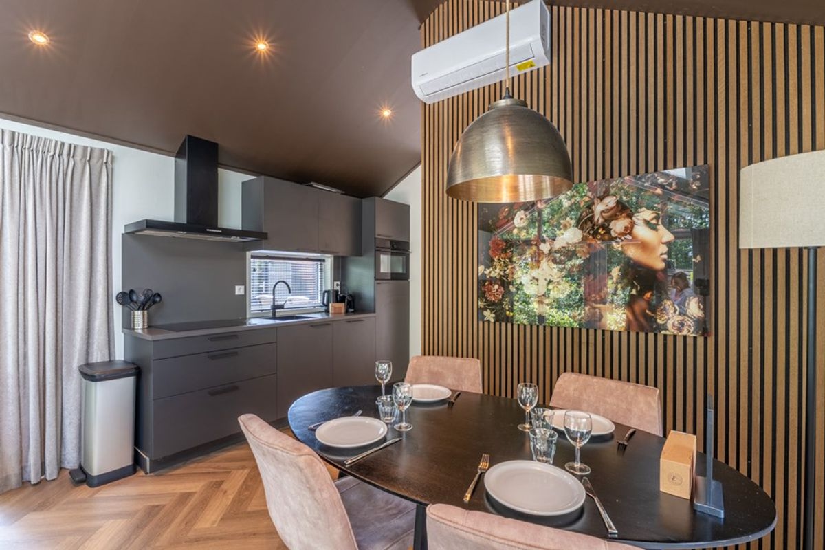 De cottage beschikt over twee slaapkamers: één met een comfortabel tweepersoonsbed en een tweede kamer met een stapelbed én een extra eenpersoonsbed, perfect voor gezinnen of kleine gezelschappen. De moderne badkamer is voorzien van een ruime inloopdouche en een stijlvolle wastafel. Daarnaast is er een apart toilet aanwezig voor extra comfort. Dankzij de vloerverwarming én airconditioning is de woning in elk seizoen aangenaam qua temperatuur. Uiteraard is er ook wifi aanwezig, zodat je altijd verbonden blijft. De omheinde tuin met loungeset en eettafel nodigt uit om volop te genieten van het buitenleven. Na een lange boswandeling is de hottub dé plek om te ontspannen.