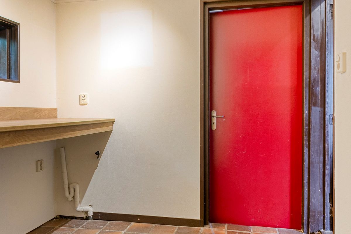 Aansluitend aan de keuken de bijkeuken met ruimte voor de wasmachine en droger. Hier bevindt zich tevens het toilet en de badkamer met wastafel in meubel en ligbad. Er is geen vrije achterom maar dat is wel zo veilig. Fietsen, scooters etc. kunt u in de inpandige berging stallen, de berging is binnendoor bereikbaar maar ook vanaf de voorzijde van de woning.