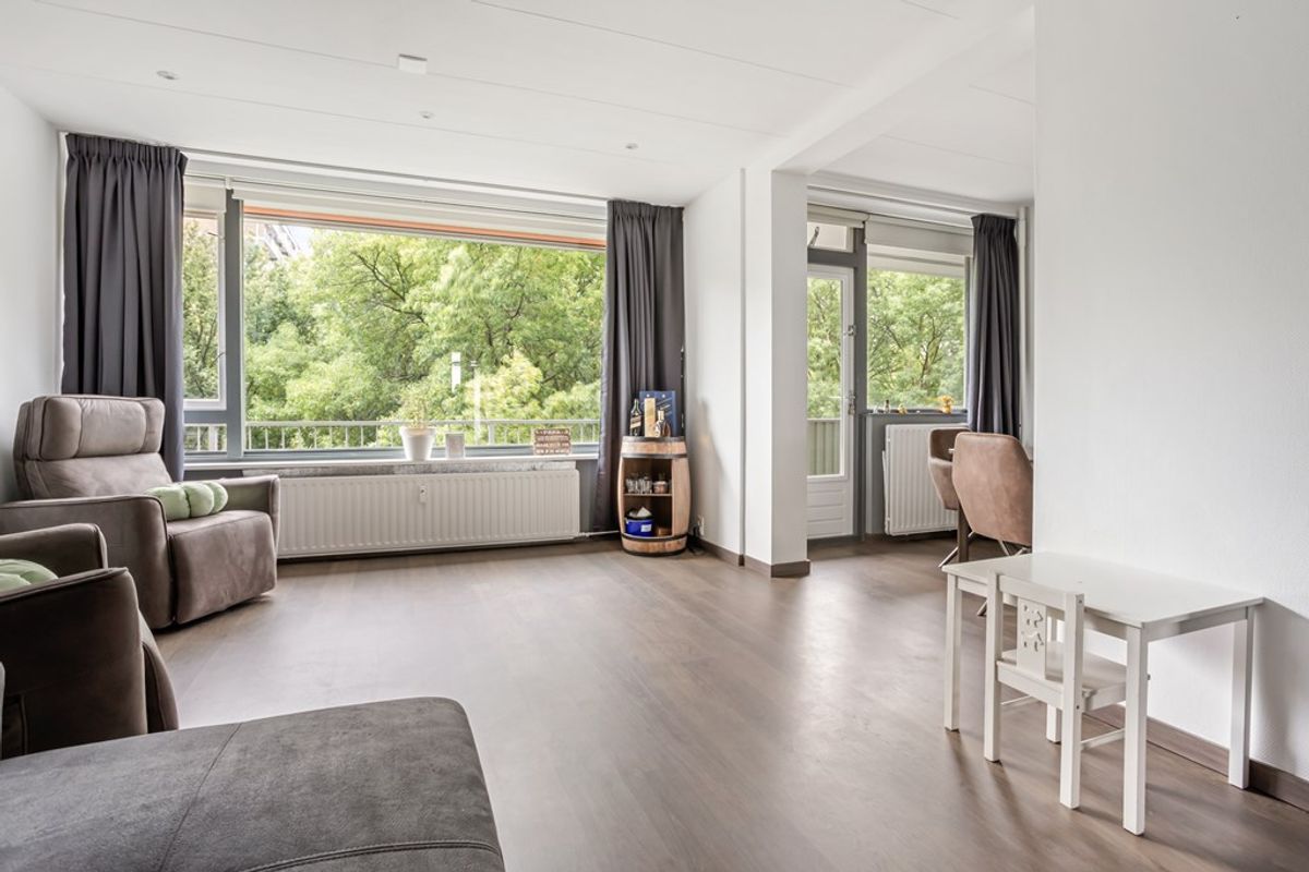 Entree via gesloten ingang met bellentableau en brievenbussen. Liften en trap naar de galerij van de 4e verdieping. Via het tochtportaal toegang tot de hal die toegang biedt aan alle ruimtes. Aan de voorzijde bevinden zich de keuken en 2 slaapkamers, De keuken is voorzien van diverse inbouwapparatuur en door de slimme indeling is er ook ruimte voor de wasmachine en droger. Aan de achterzijde bevinden zich de woonkamer met zijkamer, die makkelijk om te bouwen is naar een 4e slaapkamer, en de masterbedroom. Het balkon bevindt zich op het zonnige zuiden en is omgeven door groen. De moderne badkamer en toilet zijn, net als de keuken, in zeer nette staat. ook is de woning voorzien van een ruime bergkast waar zich ook de boiler (huur) bevindt.