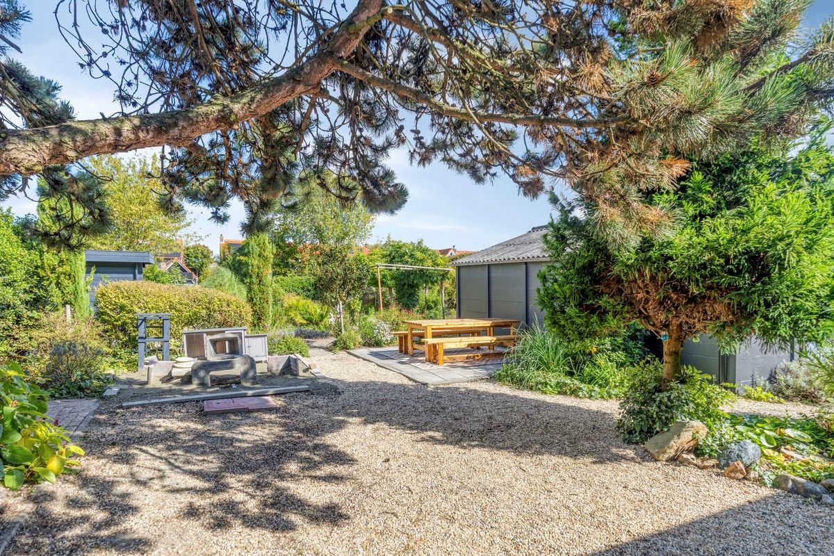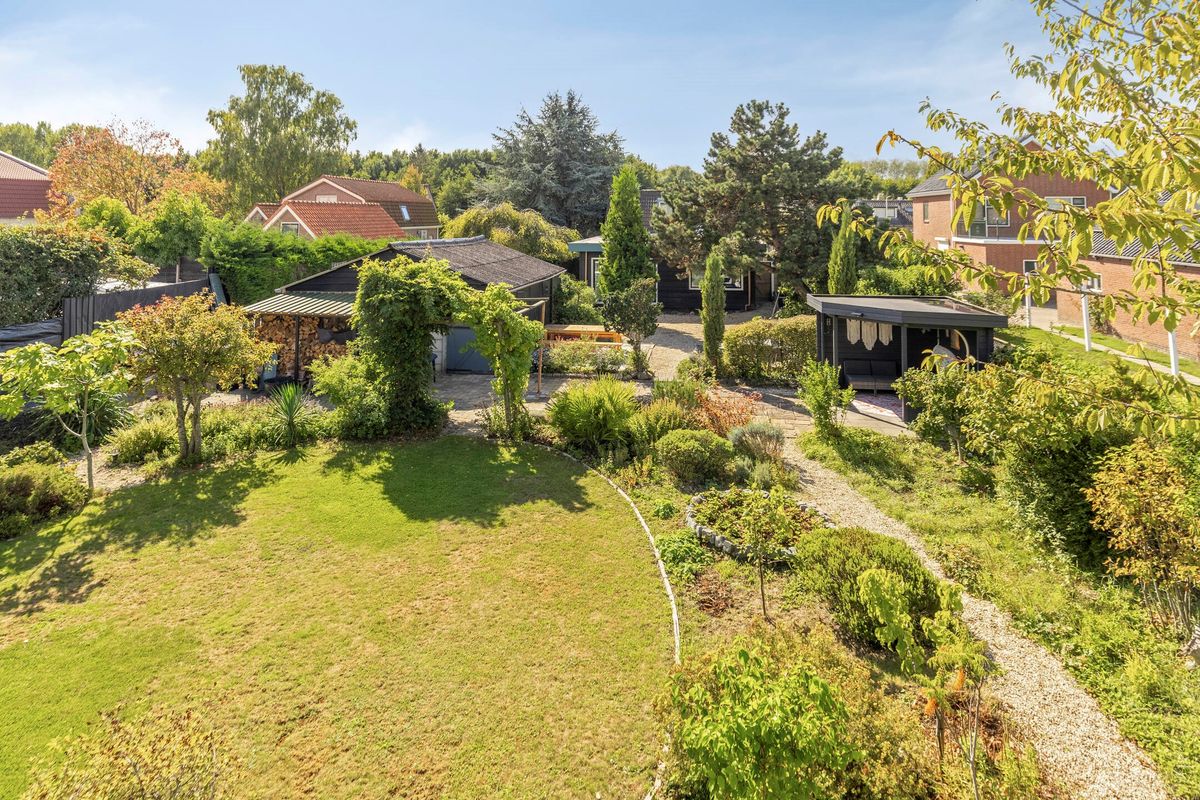 De royale tuin is speels aangelegd en biedt volop groen en privacy. De tuin, met natuurvijver, nodigt uit tot buitenleven en is in alle seizoenen een plaatje om te zien. Er zijn meerdere zitplekken, een overkapping en een ruime schuur die ideaal is voor hobbyisten of extra opslag. De tuin biedt ook mogelijkheden voor het houden van kippen of het aanleggen van een moestuin. Daarnaast liggen er 10 zonnepanelen op het dak, wat bijdraagt aan lage energielasten en duurzaamheid.