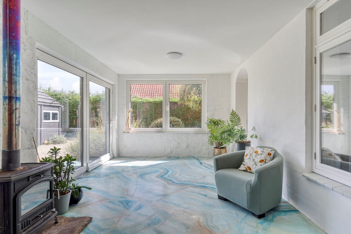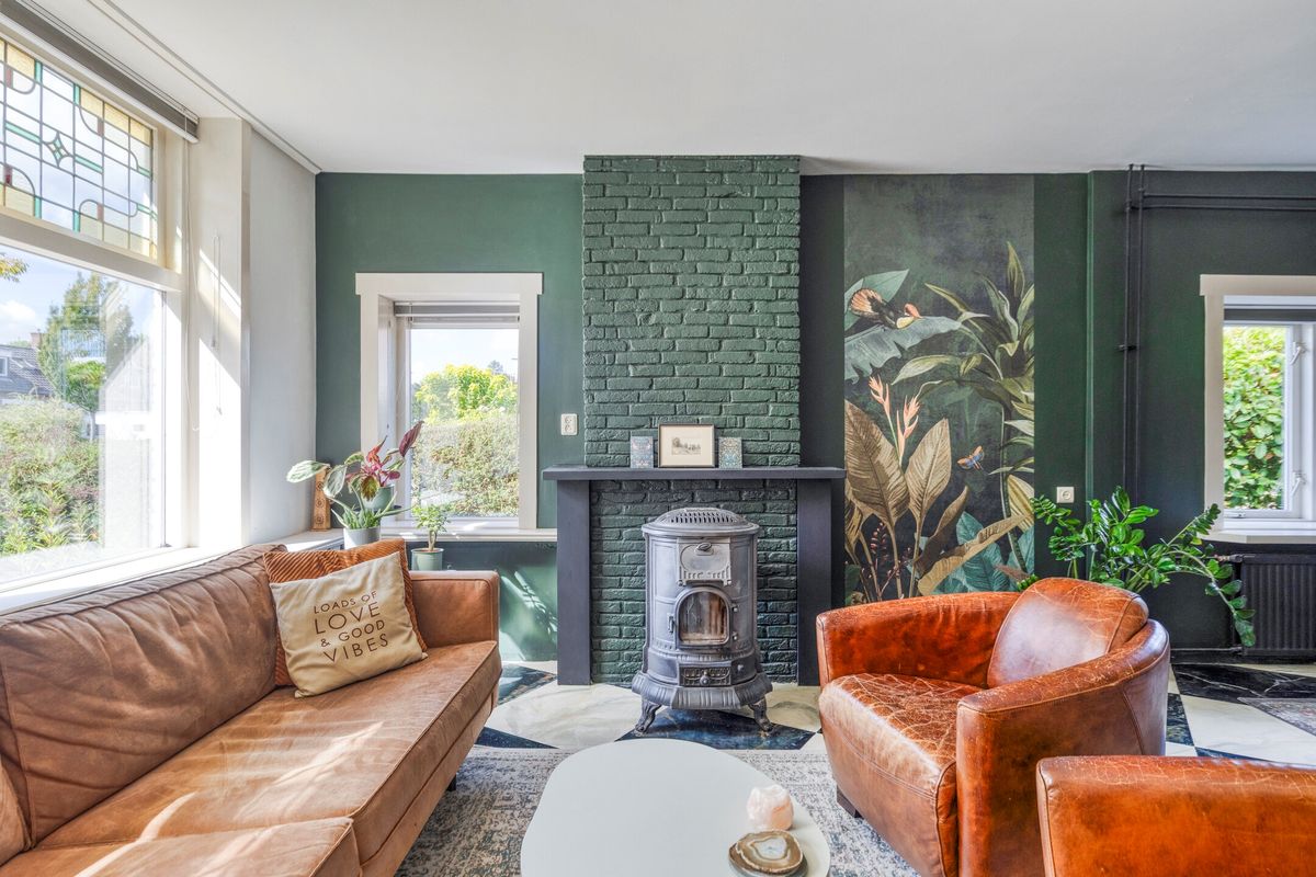 - Gezellige woon- en tuinkamer voorzien van een houtkachel