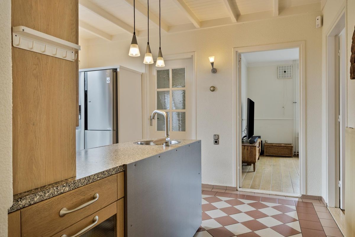 Het voorhuis is te betreden via de voordeur aan de voorzijde. De ontvangsthal is voorzien van een trapopgang naar de eerste verdieping, een kelder en geeft toegang tot de woonkeuken. Aan de voorzijde bevindt zich een warme en gezellige woonkamer met en-suite eetkamer, waar grote raampartijen zorgen voor veel licht en een prettige sfeer. De ruime woonkeuken heeft een L-vormige opstelling en is uitgerust met diverse inbouwapparatuur. Tevens beschikt deze ruimte over openslaande deuren naar de zij-tuin. Vanuit de keuken is er toegang tot een royale hal in het achterhuis. Deze ruime hal, met trapopgang naar de eerste verdieping, ligt centraal en biedt toegang tot een separate toiletruimte en de badkamer. De moderne en eigentijdse badkamer is voorzien van vloerverwarming en uitgerust met een douche, wastafel met meubel, toilet en witgoedaansluitingen. Vanuit de hal is er toegang tot de slaapkamer en woonkeuken van het achterhuis. De woonkeuken heeft een hoekopstelling en is eveneens voorzien van diverse inbouwapparatuur en een praktische koffiecorner. De aangrenzende woonkamer beschikt over openslaande deuren naar de tuin, waardoor binnen en buiten mooi in elkaar overlopen. De slaapkamer is zowel bereikbaar vanuit de hal als vanuit de woonkamer.