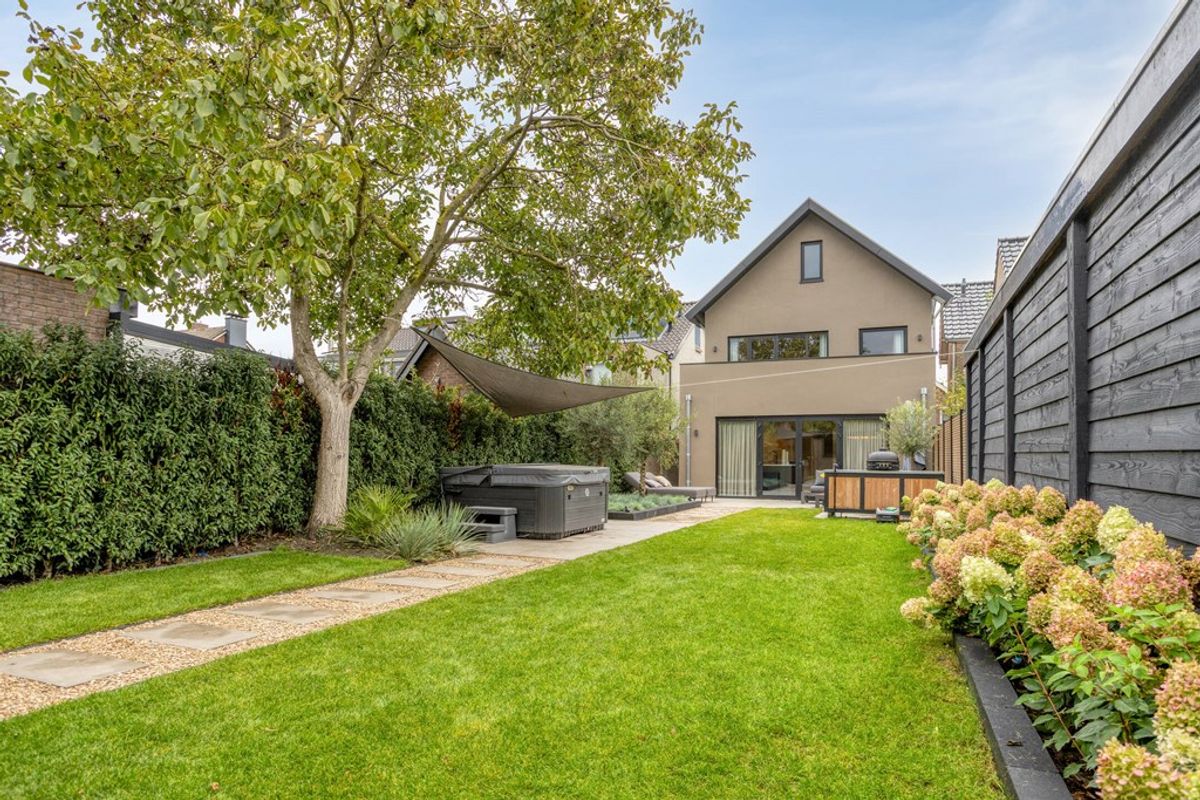 De achtertuin is een verlengstuk van de leefruimte – strak aangelegd, groen omzoomd en gericht op ontspanning. Hier geniet u in stijl van de buitenlucht, met een groot terras, jacuzzi(optioneel) en voldoende privacy. De tuin is diep en onderhoudsvriendelijk, voorzien van volwassen beplanting, een royaal gazon. Achter bevindt de toegang tot een dubbele garage, deze is met de auto bereikbaar via de achterzijde. Deze tuin biedt de perfecte combinatie van luxe en functionaliteit, waar elke zomerdag als vakantie voelt.