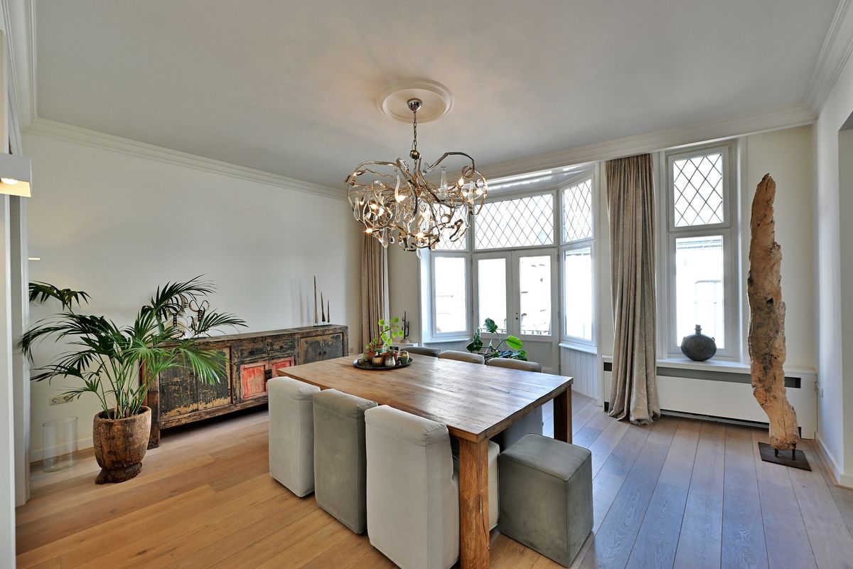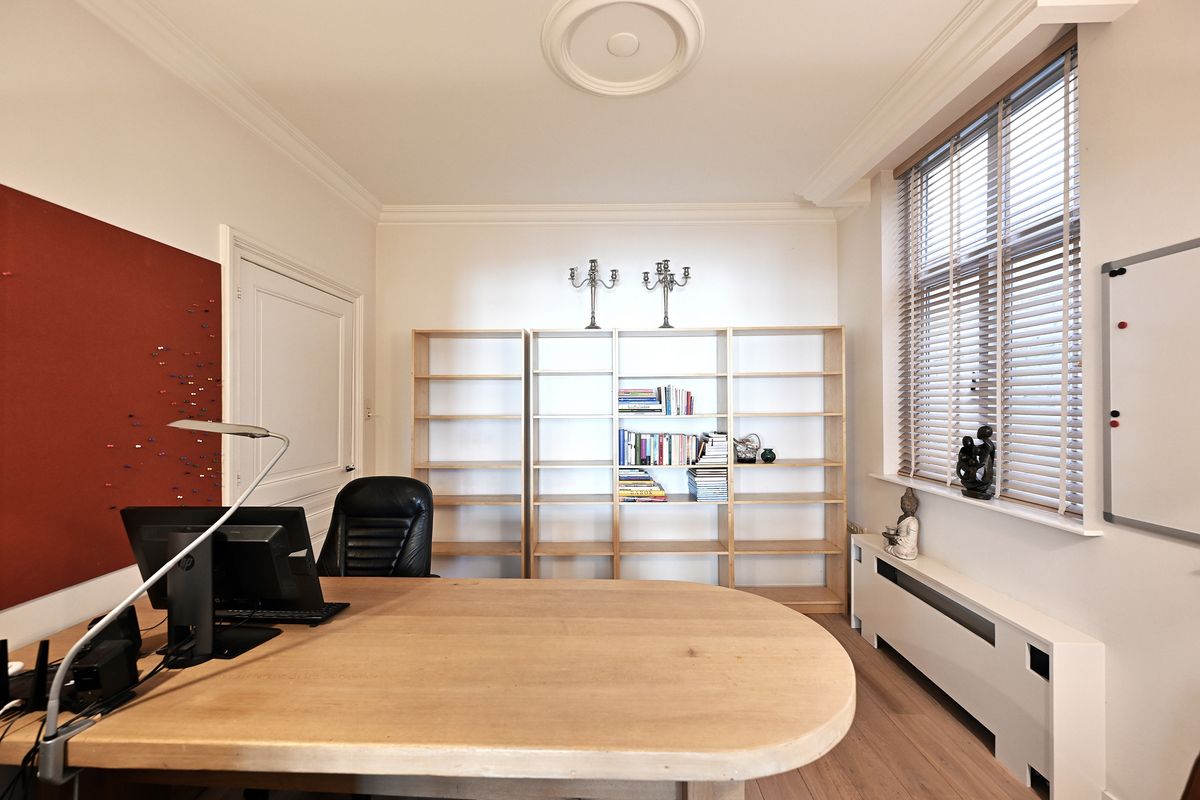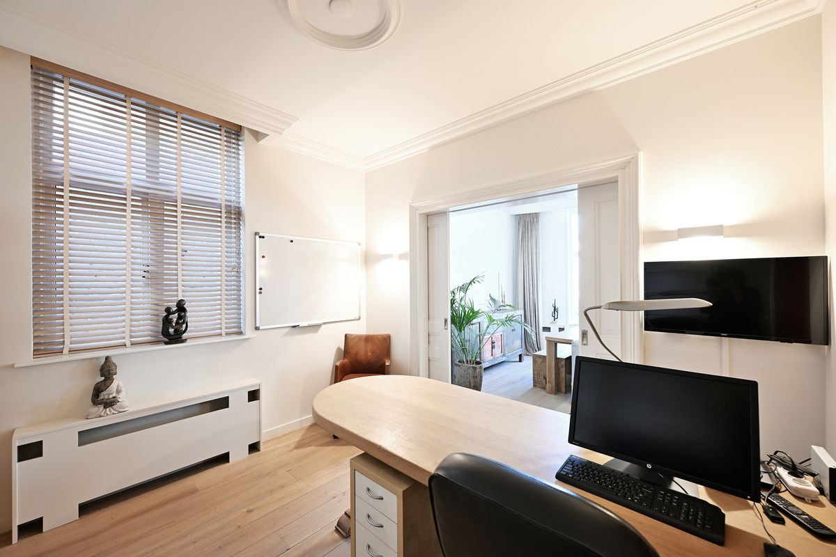 The living room has two authentic bay windows, the doors of which can be completely opened and offer a wonderful view of the beautiful Nieuwlandstraat. The office is located behind the living room and offers sufficient privacy and tranquility to be able to work (from home) undisturbed.