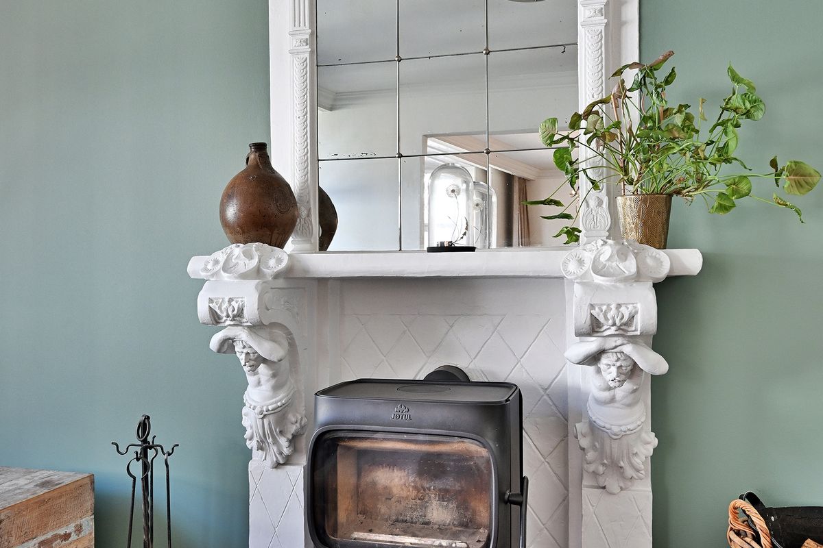 The garden house has a fireplace and a kitchen.