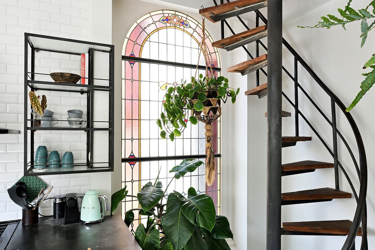 From the kitchen you can take the beautiful wooden spiral staircase to two more spacious bedrooms.