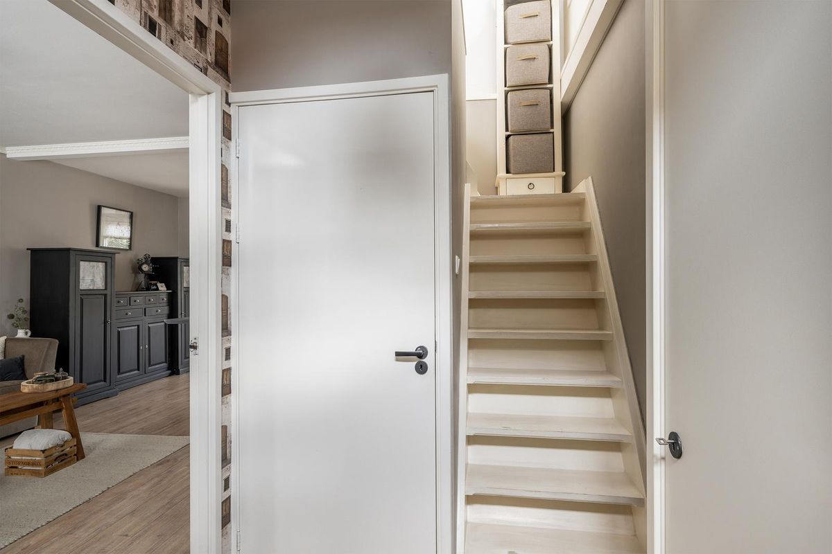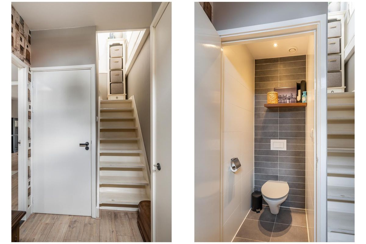 Hal/entree met de meterkast (8 groepen, waarvan 2 met een ingebouwde aardlekschakelaar en glasvezelaansluiting), geheel betegeld toilet met hangcloset, trapopgang en toegang tot de woonkamer.