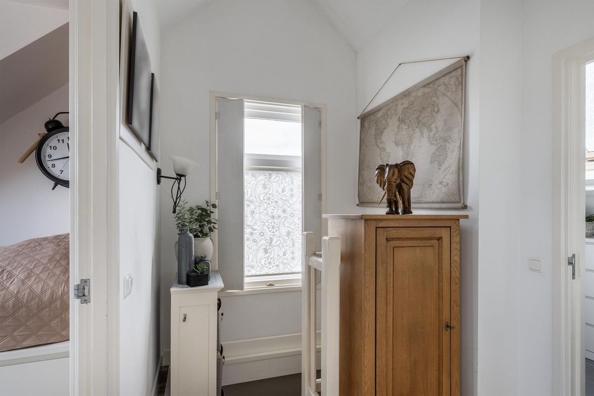 Overloop met toegang tot 3 slaapkamers, de badkamer en een steekzoldertje middels een luik.