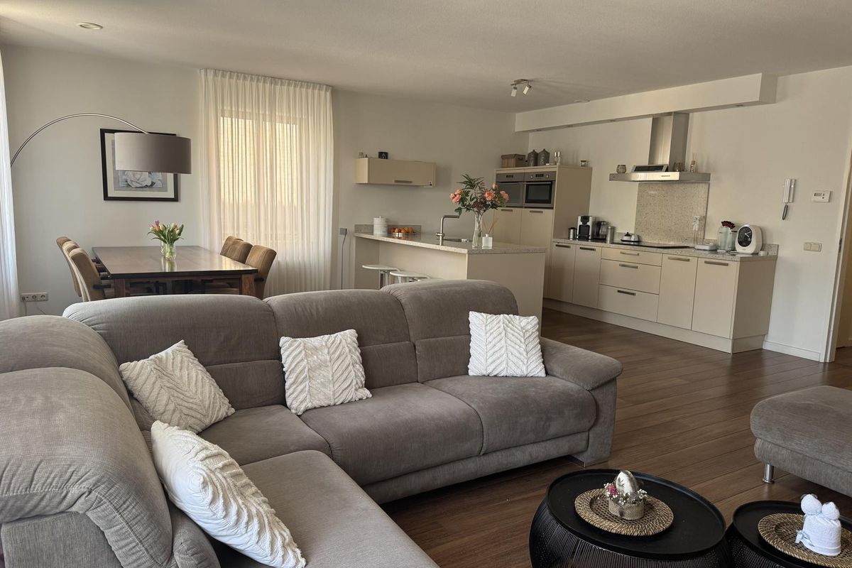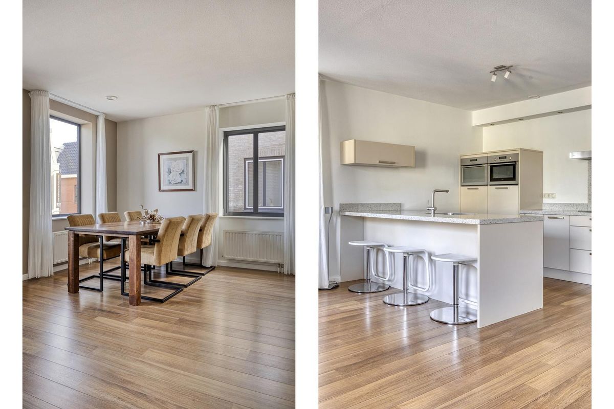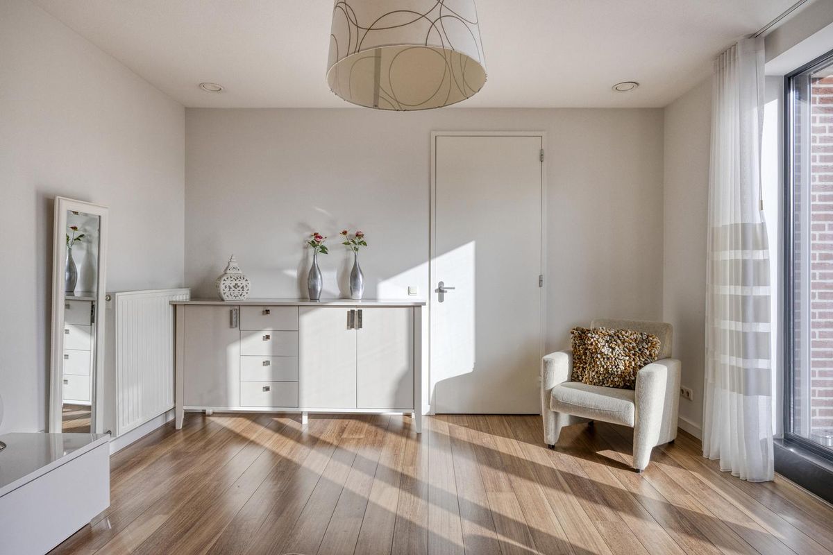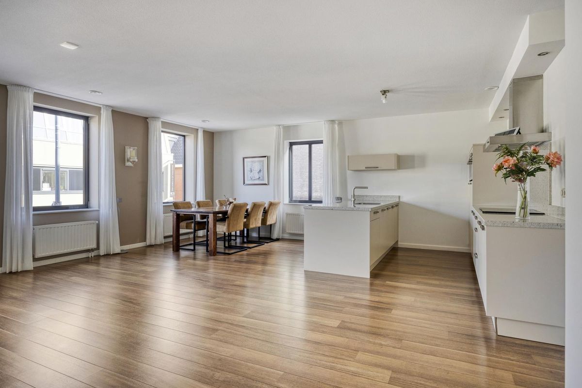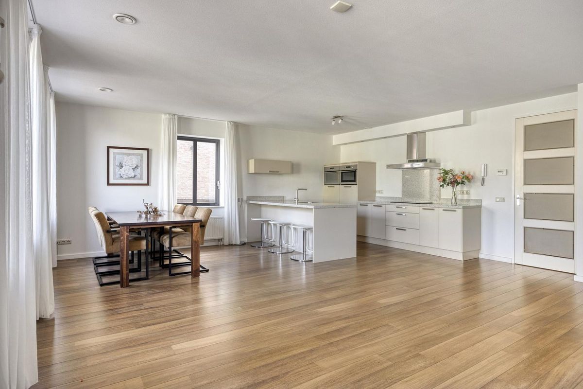 De lichte woonkamer met eetkamer en open keuken zijn afgewerkt met een laminaatvloer, stucwerk als wandafwerking en spuitwerk als plafondafwerking. De woonkamer met eetkamer en open keuken heeft veel lichtinval door de grote raampartijen, deze bieden een fraai uitzicht over het centrum van Made.