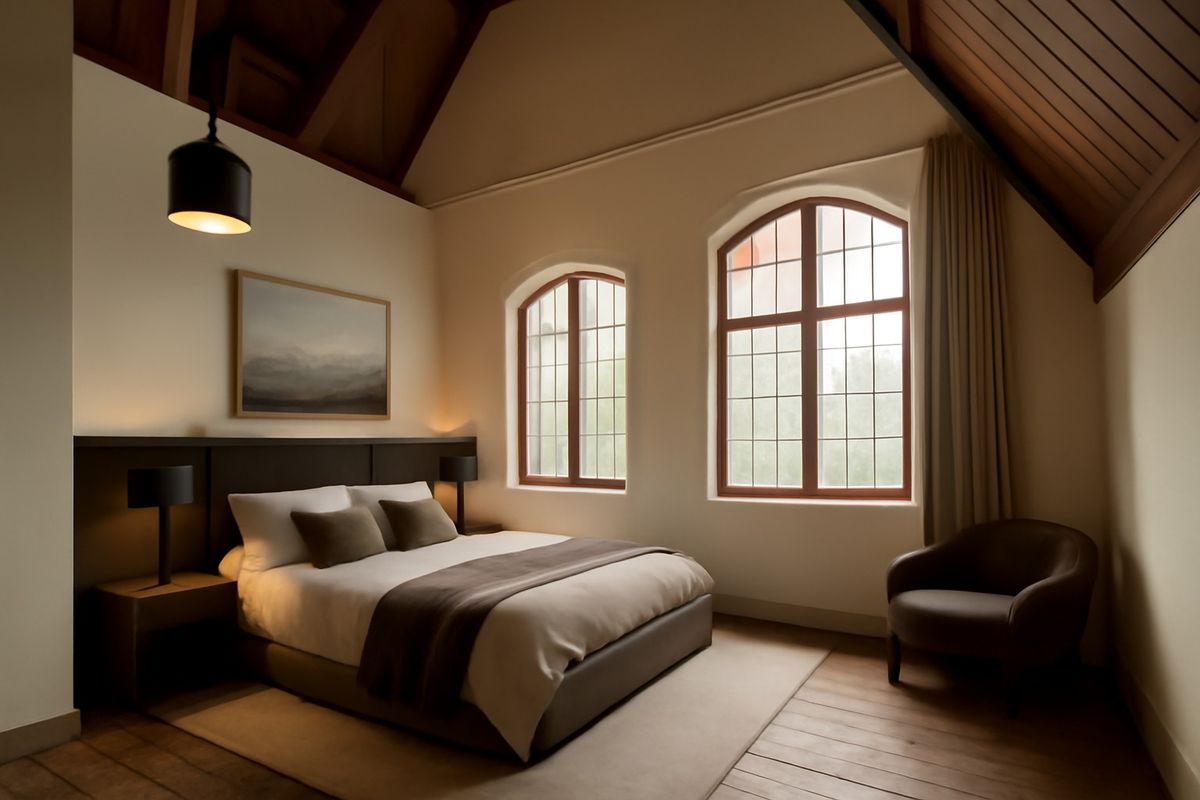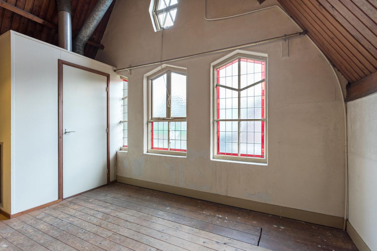 Een deel van de woning beschikt over een verdiepingsvloer van circa 18 m², die nu fungeert als slaapverdieping met extra opbergruimte. Dankzij de hoogte en het lichtinval is dit een prettige, sfeervolle ruimte die nog naar eigen smaak kan worden afgewerkt.