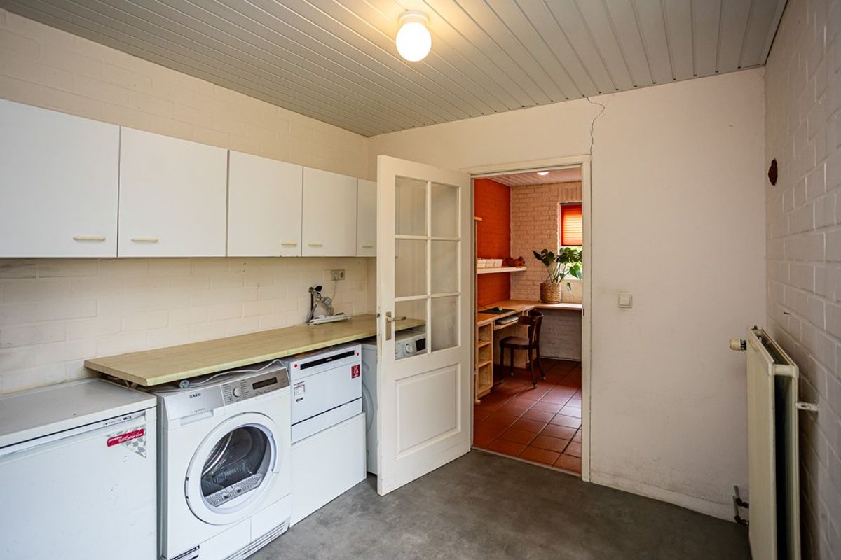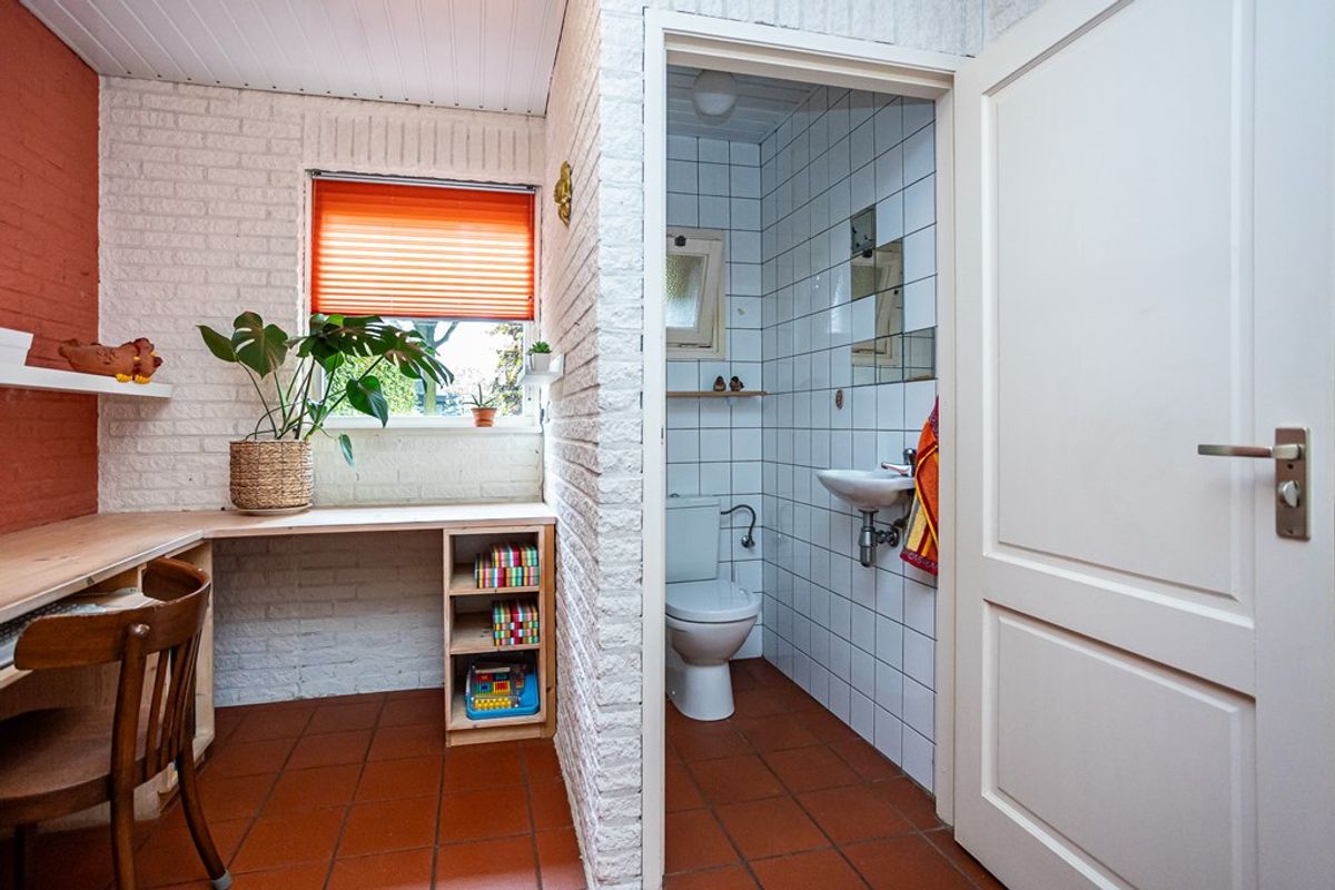 hal/entree, eet-/woonkamer met plavuizenvloer en vloerverwarming, open keuken met keukenblok in hoekopstelling met diverse inbouwapparatuur, slaapkamer met toegang tot badkamer met inloopdouche, vaste wastafel in badkamermeubel en toilet, werkkamer, toilet met fontein, bijkeuken/berging met witgoedaansluitingen.
