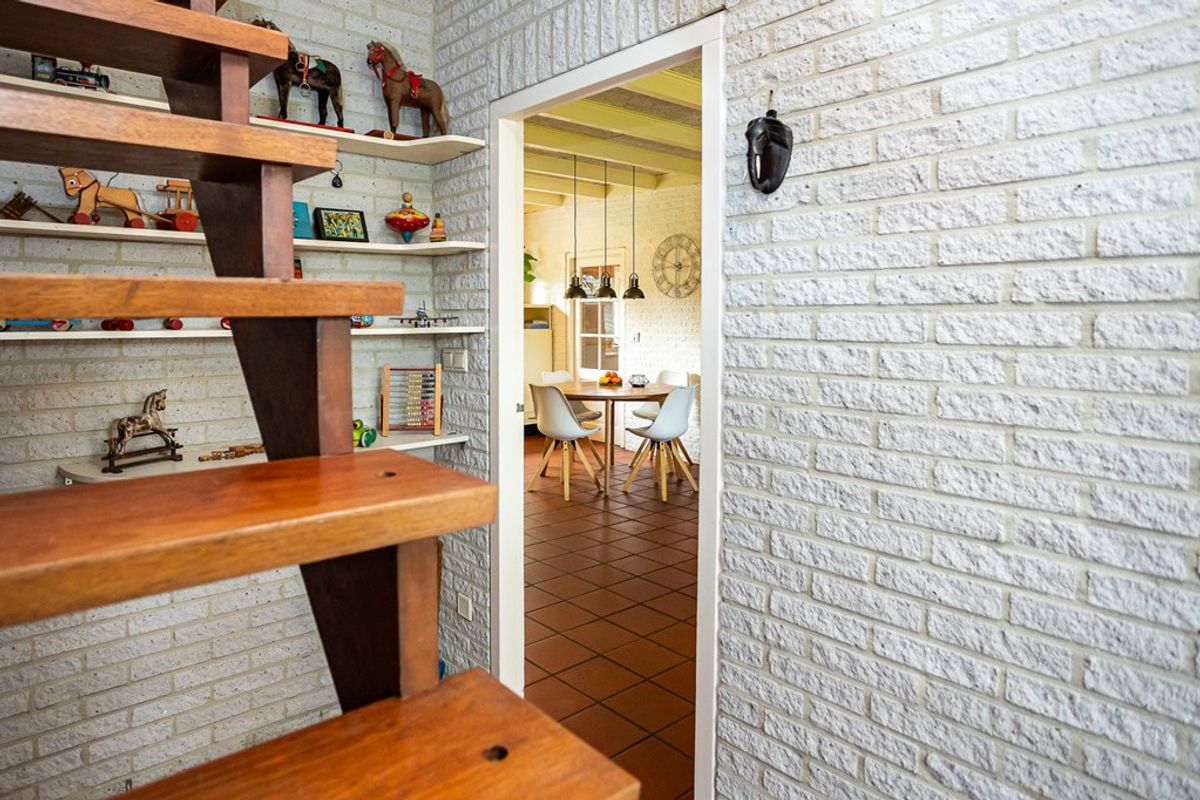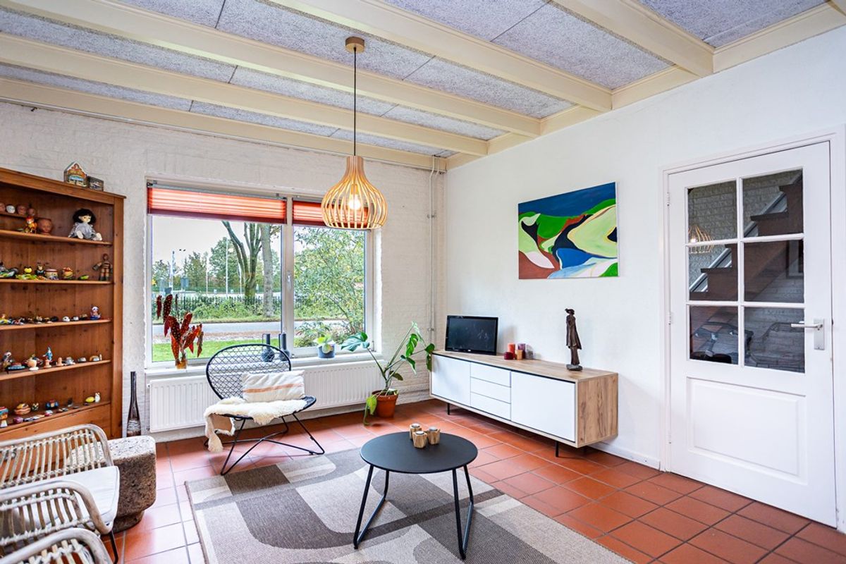 Airco-unit in de woonkamer, vloerverwarming in woon- en werkkamer. Houten kozijnen met enkele- en dubbele beglazing,