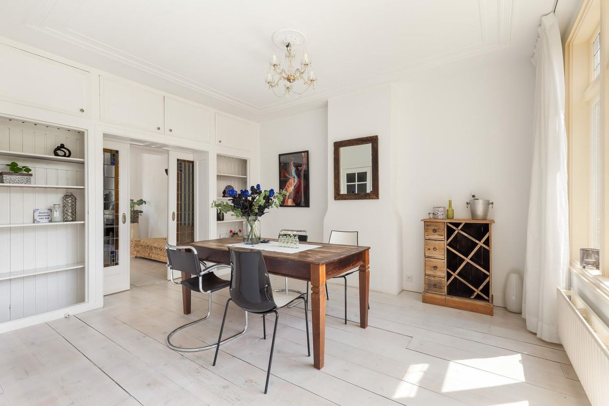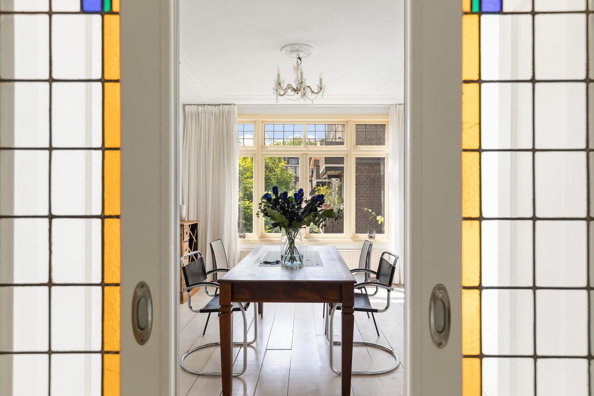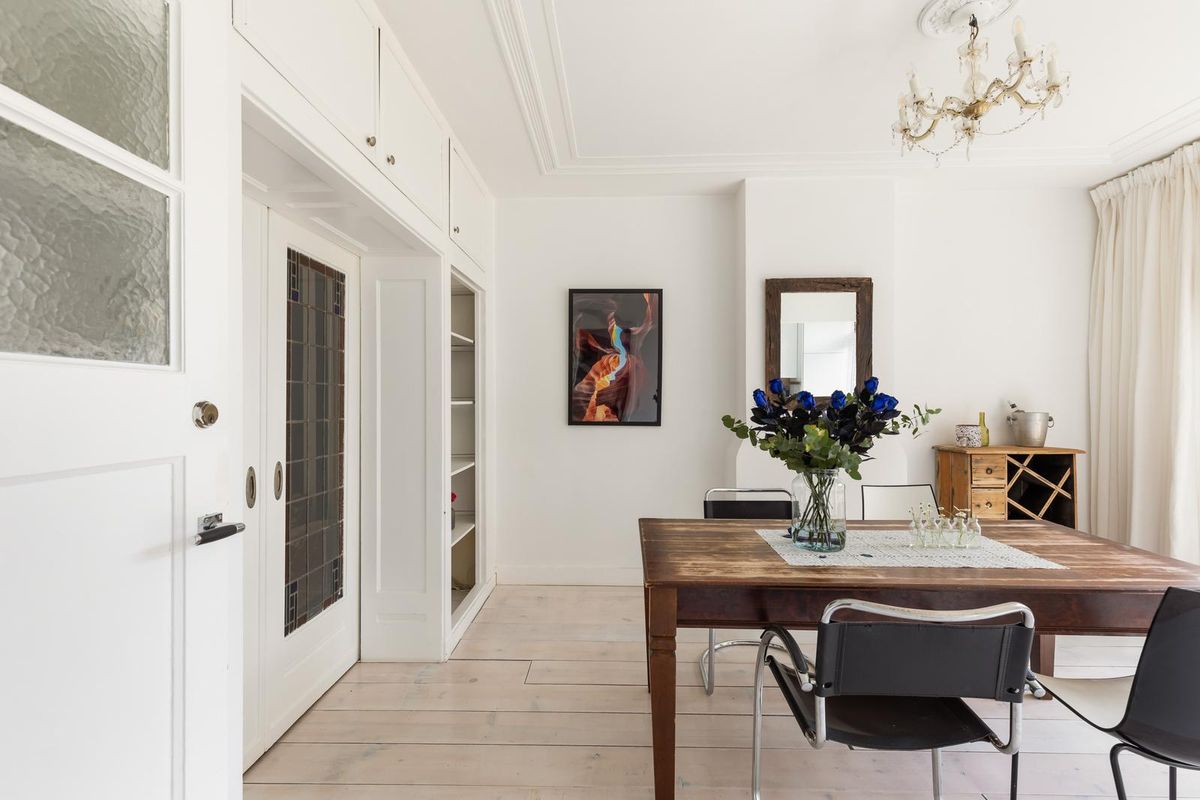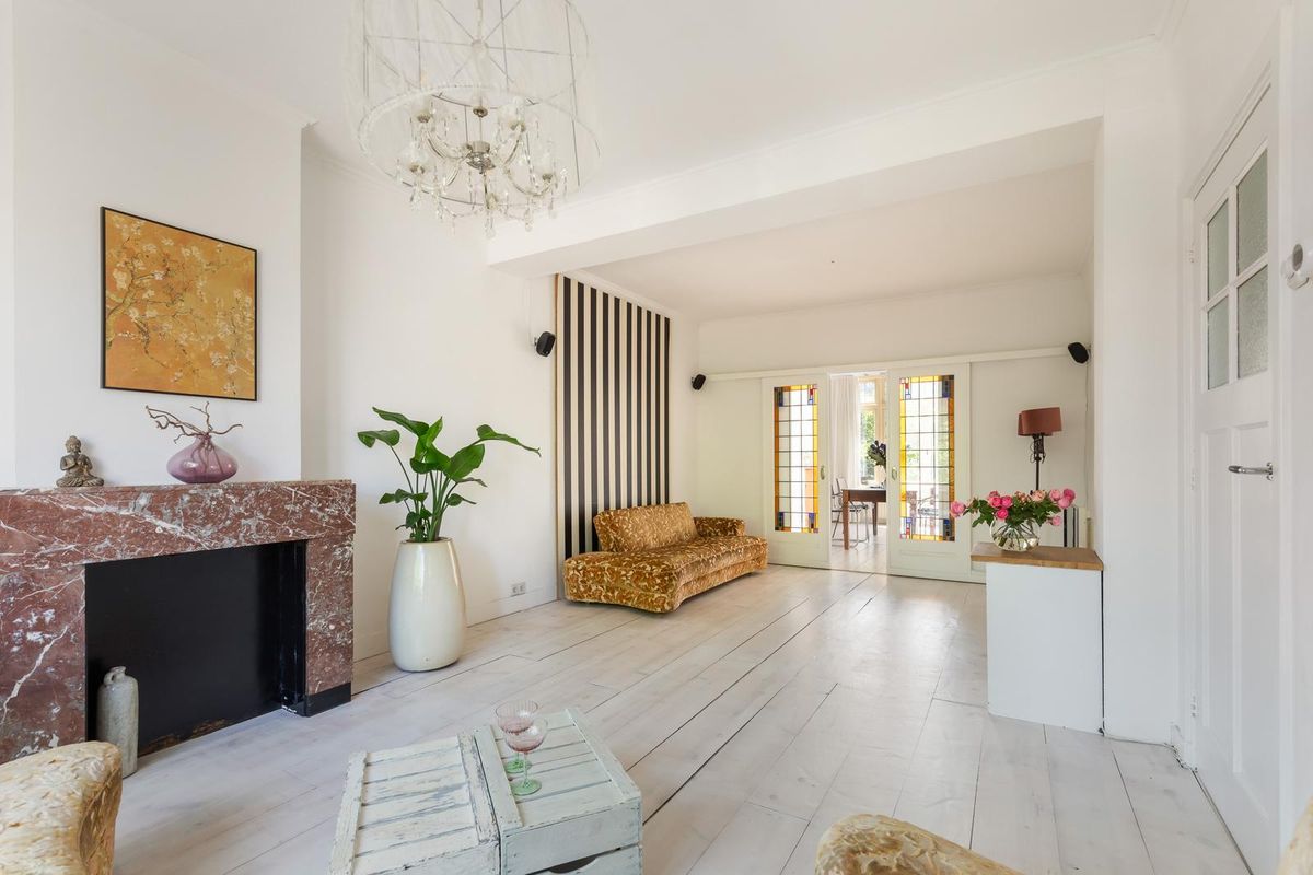 Ruime hal/entree met vaste kast (met wasmachine-aansluiting), separaat toilet en toegang tot alle vertrekken op deze verdieping. Direct valt het oog op de karakteristieke ornamenten, paneeldeuren, schouw en de glas-in-lood ramen & schuifdeuren uit de jaren ’30. Door de grote raampartijen aan beide zijde van de woning treedt er veel natuurlijk licht de woning binnen, wat zorgt voor een fijne, lichte sfeer. De royale woonkamer en suite is erg ruim te noemen en is gelegen aan de voorzijde van de woning. Er is meer dan voldoende ruimte om een riante zitgedeelte te creëren. Middels de karakteristieke en-suite schuifdeuren bereik je het eetgedeelte. Dankzij de half open keuken is dit de ideale plek om uitgebreid te dineren met gezelschap, terwijl je gezellig in contact blijft met elkaar. De keuken beschikt over diverse inbouwapparatuur zoals een 4-pits gasfornuis met afzuigkap, oven, vaatwasser en een koel-/vriescombinatie. Middels een deur gelegen in de keuken bereik je het 1e balkon gelegen op het zuidwesten. Hier kan je gedurende de dag heerlijk van de zon genieten! De 1e slaapkamer is gelegen aan de voorzijde. Deze slaapkamer is multifunctioneel in te richten als bijvoorbeeld een slaap-, kinder- of werkkamer.