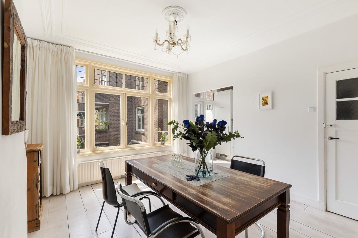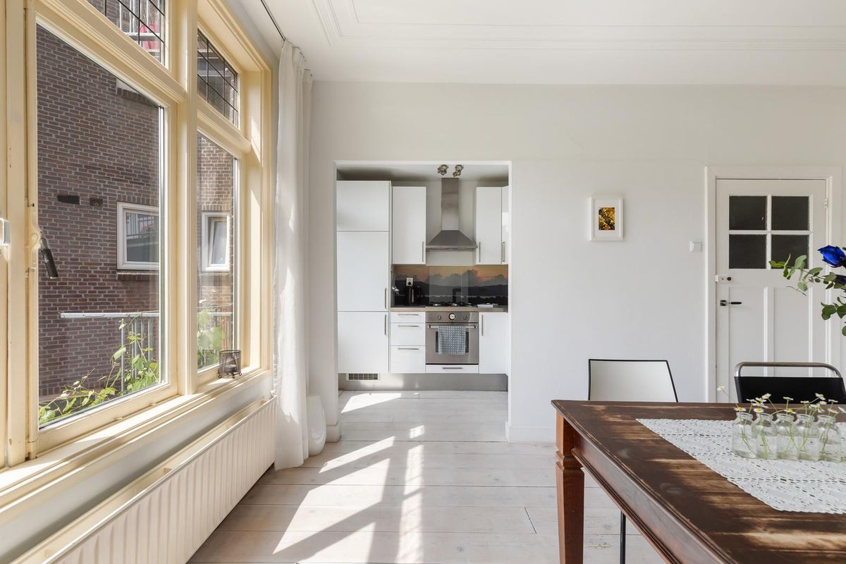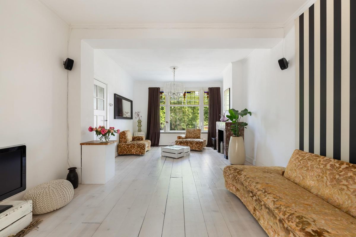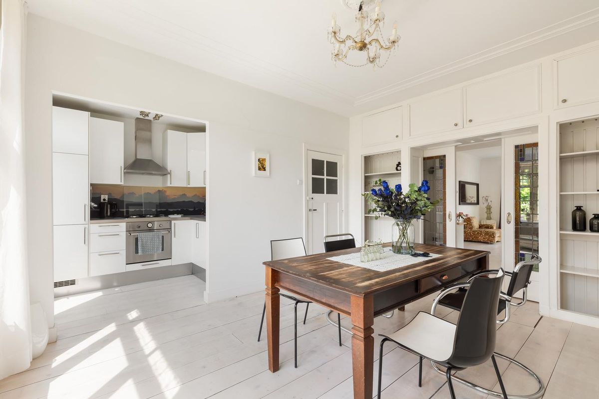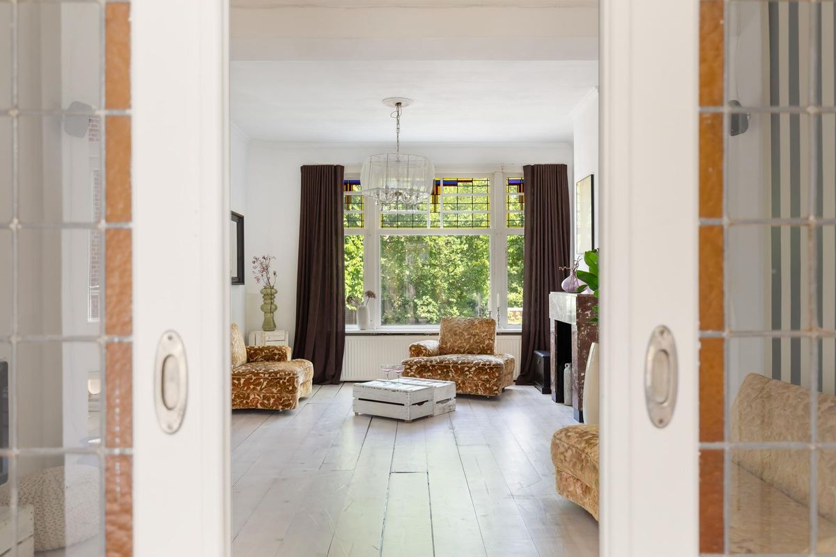 Ruime hal/entree met vaste kast (met wasmachine-aansluiting), separaat toilet en toegang tot alle vertrekken op deze verdieping. Direct valt het oog op de karakteristieke ornamenten, paneeldeuren, schouw en de glas-in-lood ramen & schuifdeuren uit de jaren ’30. Door de grote raampartijen aan beide zijde van de woning treedt er veel natuurlijk licht de woning binnen, wat zorgt voor een fijne, lichte sfeer. De royale woonkamer en suite is erg ruim te noemen en is gelegen aan de voorzijde van de woning. Er is meer dan voldoende ruimte om een riante zitgedeelte te creëren. Middels de karakteristieke en-suite schuifdeuren bereik je het eetgedeelte. Dankzij de half open keuken is dit de ideale plek om uitgebreid te dineren met gezelschap, terwijl je gezellig in contact blijft met elkaar. De keuken beschikt over diverse inbouwapparatuur zoals een 4-pits gasfornuis met afzuigkap, oven, vaatwasser en een koel-/vriescombinatie. Middels een deur gelegen in de keuken bereik je het 1e balkon gelegen op het zuidwesten. Hier kan je gedurende de dag heerlijk van de zon genieten! De 1e slaapkamer is gelegen aan de voorzijde. Deze slaapkamer is multifunctioneel in te richten als bijvoorbeeld een slaap-, kinder- of werkkamer.