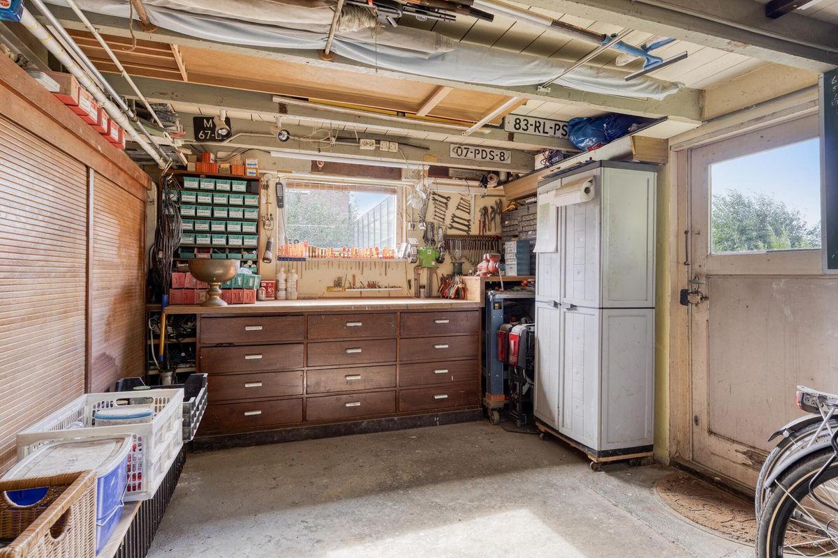 Aangebouwde garage (ca. 14 m2) voorzien van openslaande deuren, elektra en stopcontacten.