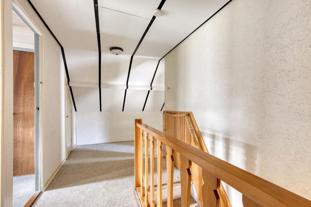 Ruime overloop met een bergkast en toegang tot alle vertrekken. De overloop is afgewerkt met vloerbedekking.
