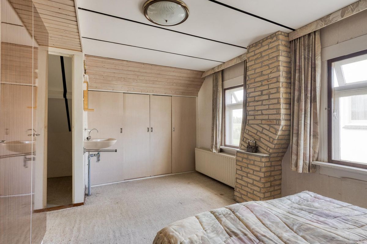 Slaapkamer 1 (ca. 14 m2) is gelegen aan de zijkant van de woning en is voorzien van een wastafel met koud/warm waterkraan en bergruimte achter het knieschot.
