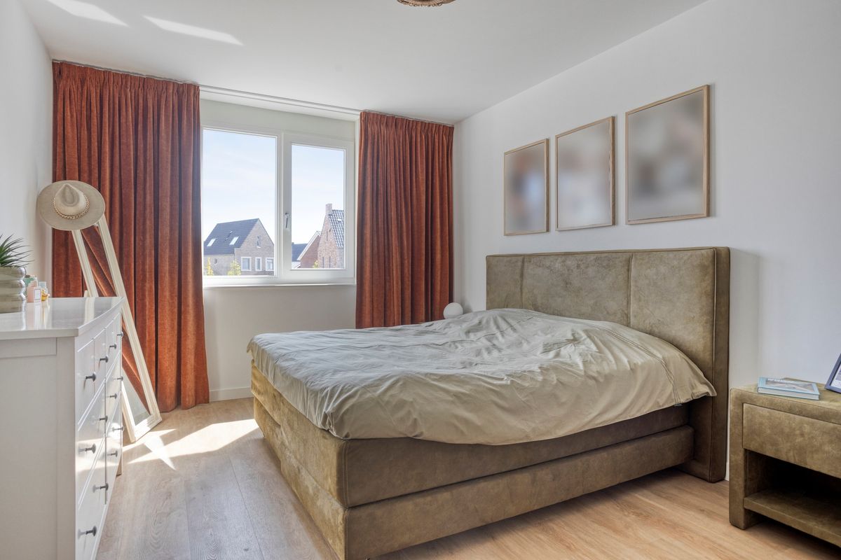Vanuit de overloop zijn 3 slaapkamers, de badkamer en de trapopgang naar de tweede verdieping bereikbaar. De badkamer is geheel betegeld en v.v. een hangend toilet, een inloopdouche, dubbele wastafel met meubel, ligbad en een designradiator. De vloer van de overloop en de slaapkamers is v.v. pvc met vloerverwarming en vloerkoeling. De wanden zijn afgewerkt met stucwerk en behang. De plafonds zijn eveneens v.v. stucwerk.