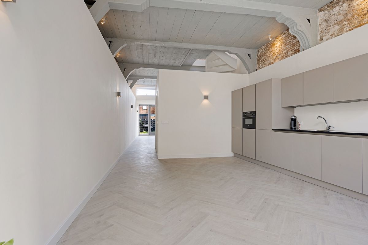 Vanaf de eerste stap in deze woning kom je ogen tekort. Is het de mooie visgraat pvc-vloer die je aandacht trekt, zijn het de prachtige authentieke houten korbelen of worden je ogen getrokken naar de fraaie oude muren, die met een slim lichtplan worden uitgelicht? Hoe dan ook: door de grote raampartij aan de voorzijde, met de entreedeur in het midden van de gevel, is de ruimte heerlijk licht. De royale en moderne wandkeuken is voorzien van diverse inbouwapparatuur. Zet er een lange tafel met stoelen neer en je kunt elke avond heerlijk aanschuiven met familie of vrienden in deze heerlijke woonkeuken.
