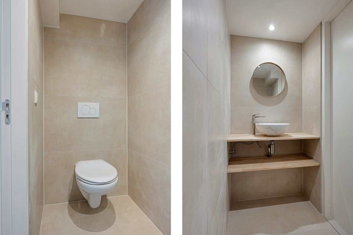 De overloop op de eerste etage heeft daglicht dankzij de dakramen en ook hier is de combinatie van oud met nieuw mooi zichtbaar. Ook op deze etage is het comfortabel dankzij vloerverwarming onder de houtlook vloer. Vanaf de overloop bereik je alle vertrekken. De ouderslaapkamer is gelegen aan de rustige achterzijde. De fraaie dakconstructie is hier in het zicht gelaten. Aan de voorzijde bevinden zich 2 ruime slaapkamers, waarvan één met een verrassende trap naar de nokverdieping. Hierdoor is een mooie extra ruimte gecreëerd: een leuke slaapplek of speelplek voor de kinderen. Hier is ook de Cv-ketel te vinden (Intergas, 2025). De moderne badkamer heeft een royale inloopdouche, dubbele wastafel en een tweede toilet. Tot slot is er aan de overloop nog een wasruimte gerealiseerd, met aansluiting voor wasmachine en droger.