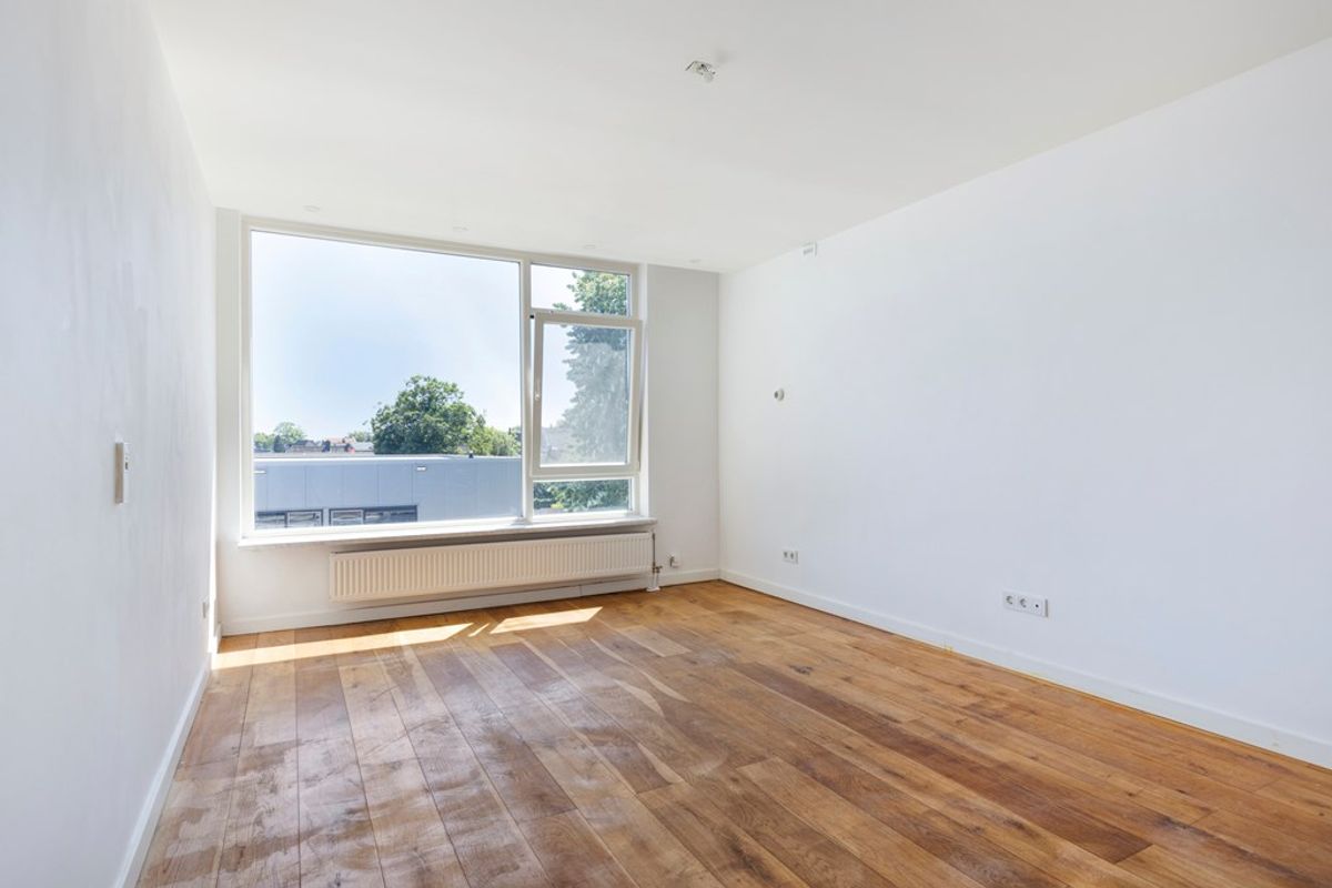 Aan de voorzijde van het appartement bevindt zich de woonkamer, waar de grote raampartijen direct de aandacht trekken. Het natuurlijke daglicht stroomt hier royaal naar binnen en zorgt voor een open en frisse sfeer. Deze ruimte nodigt uit tot ontspannen: een gezellige zithoek, een fijne leesplek of juist een werkplek – alles voelt hier ruimtelijk en licht aan.